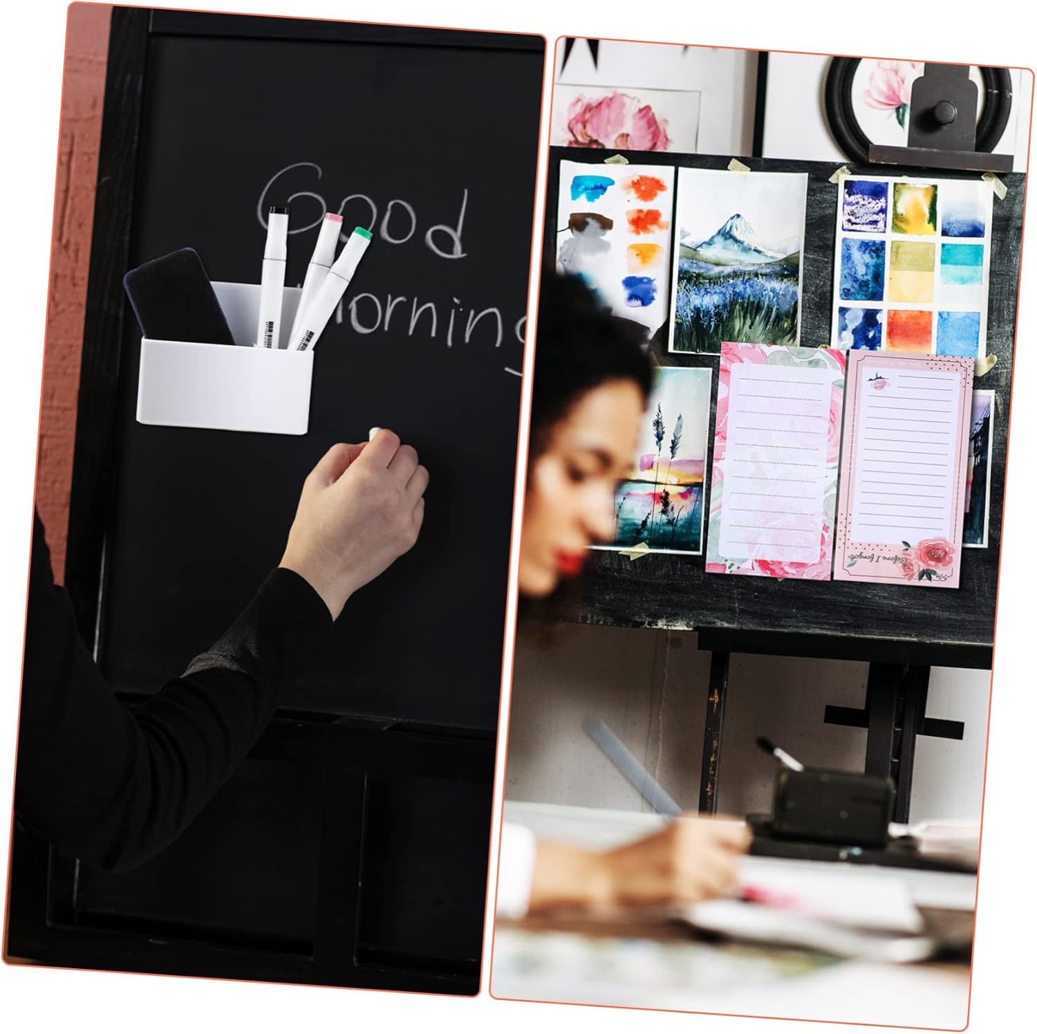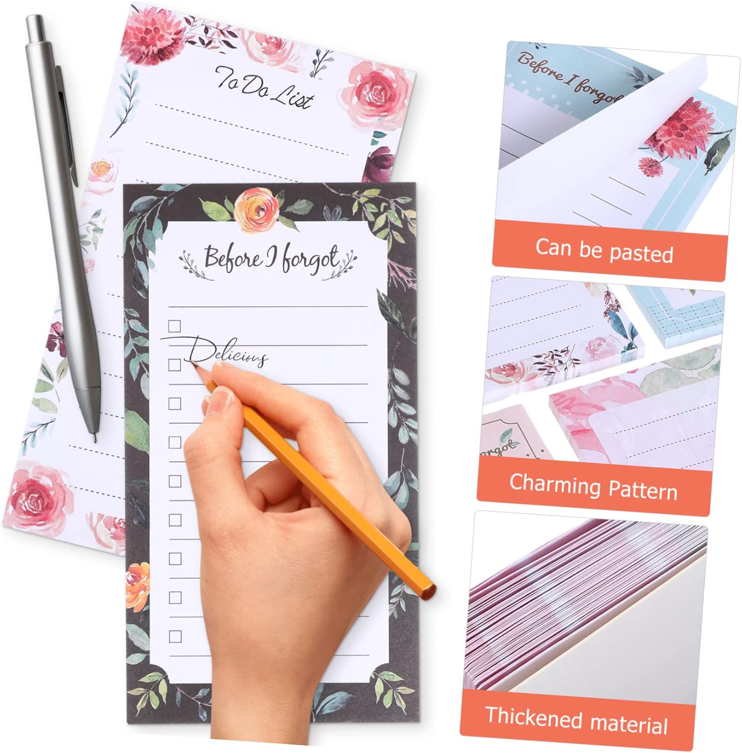 -Pen Holder: The pen holder is suitable for storing pens, sharpeners, small items, etc. It can be used in the office, home, school. It is very practical and convenient shopping list pads.