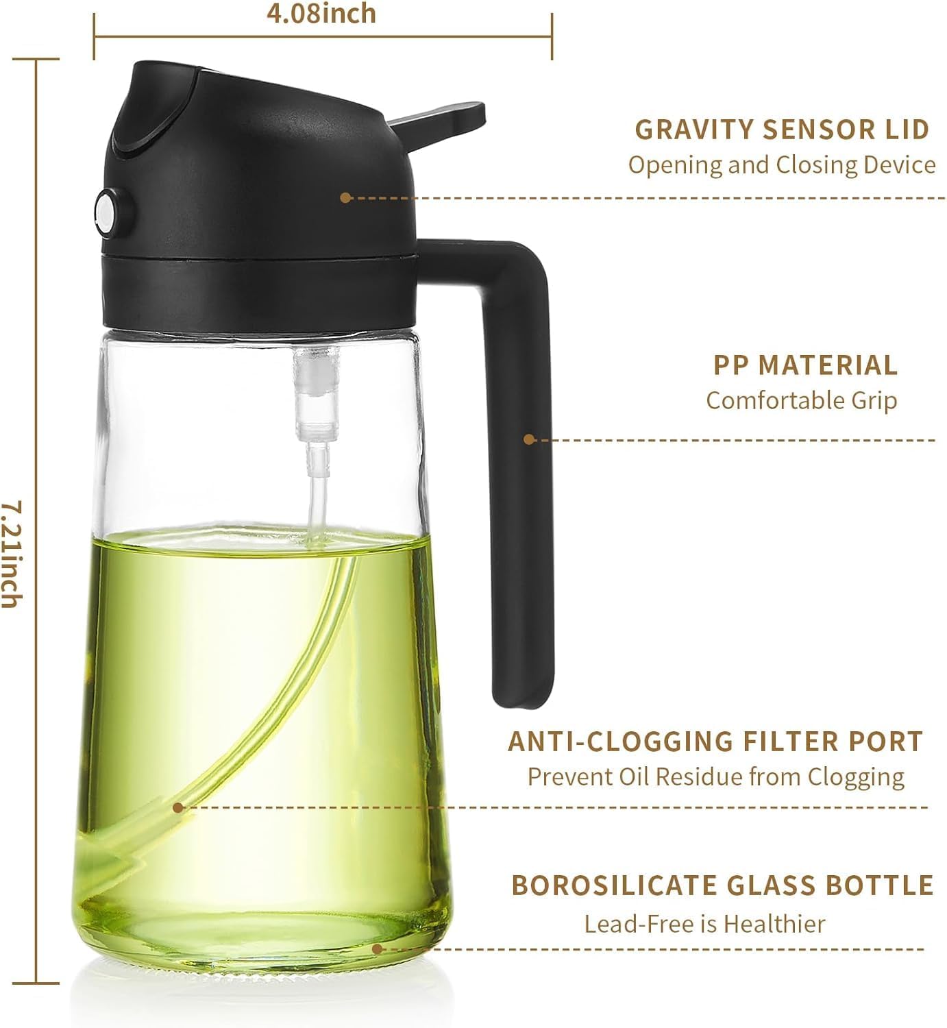 2 In 1 Oil Sprayer for Cooking, 16oz Glass Olive Oil Dispenser Bottle for Kitchen,2 In 1 Oil Sprayer for Cooking, 16oz Glass Olive Oil Dispenser Bottle for Kitchen,