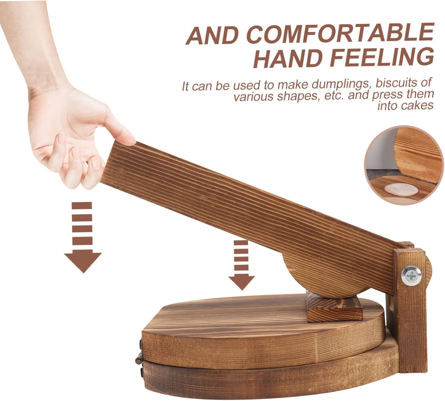 Asian kitchen dumpling press:easy to use – just insert dough and press just once,wooden manual dough press