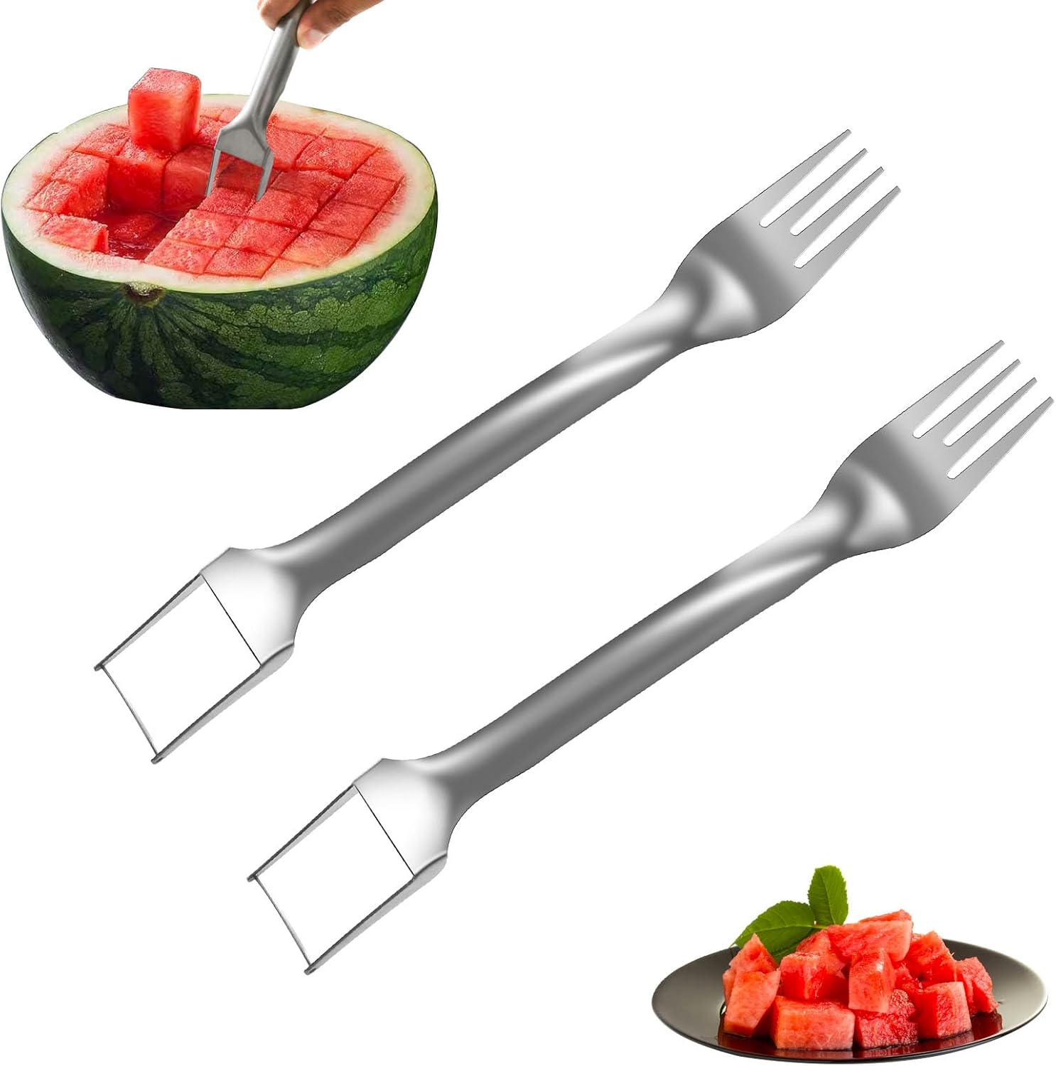 2 PCS Watermelon Fork Slicer Cutter, Stainless Steel, Silver, Ideal for Home, Party, Camping, Kitchen Gadget