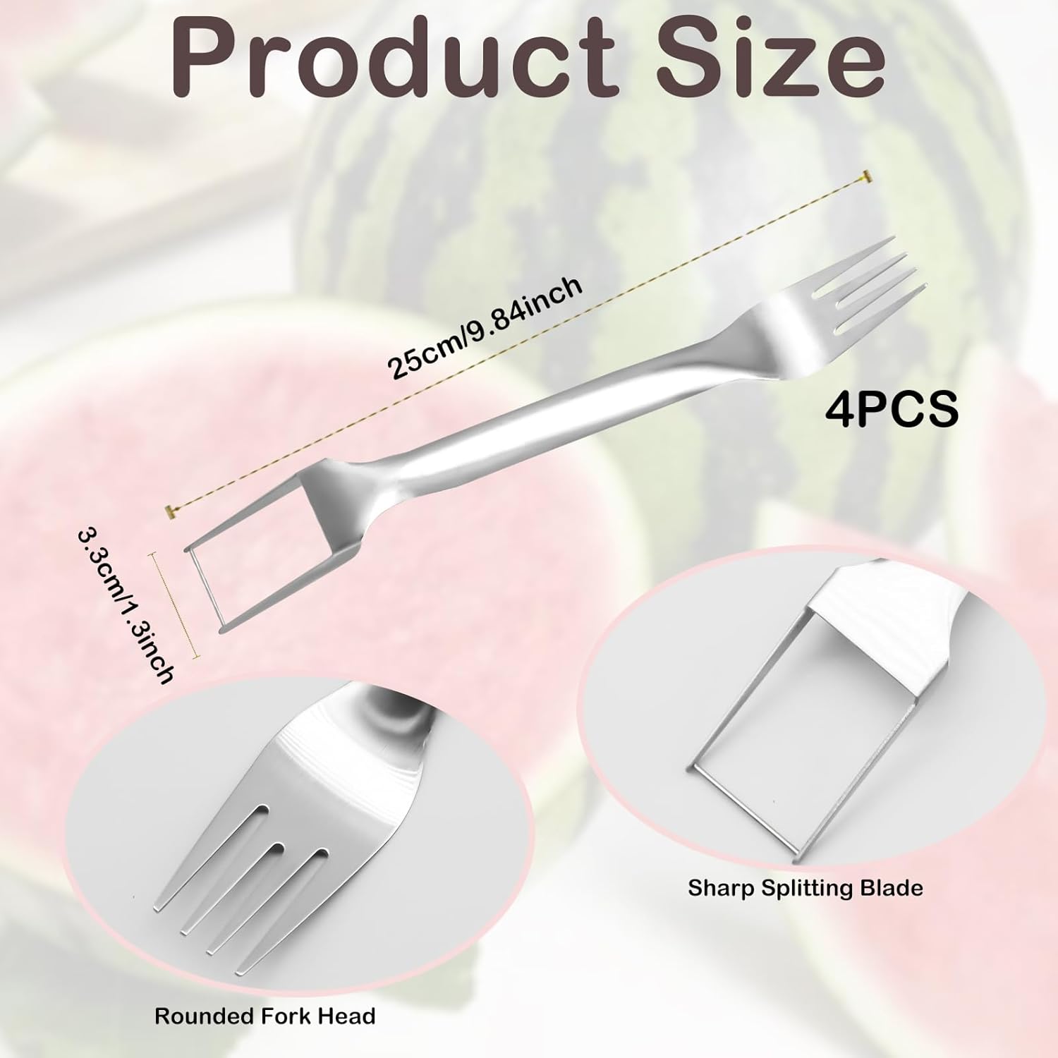 【Stainless Steel Material】 The watermelon fork slicer is made of 304 stainless steel, sturdy in construction, rustproof, and not easily damaged. The square blade of the watermelon cutter is not sharp and will not cut your hands. The stainless steel watermelon slicer features a polished handle with a round fork head for easy handling.