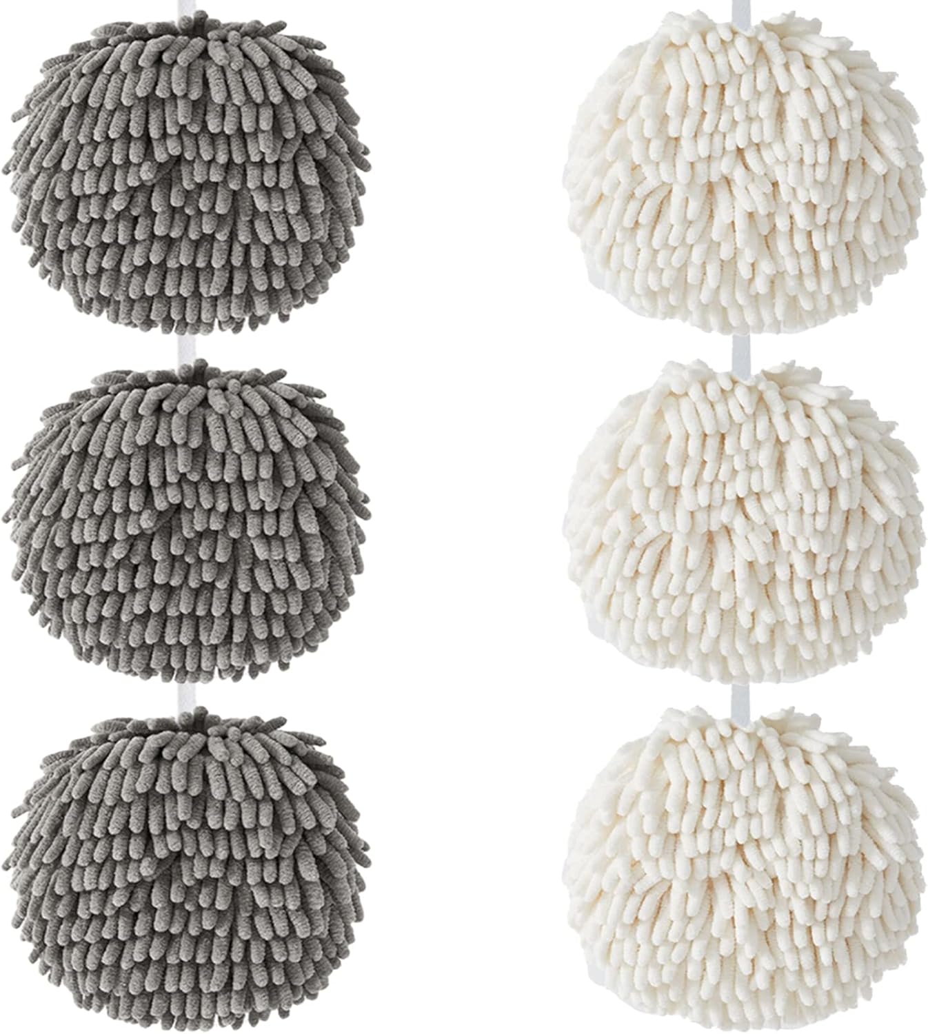 ☆ Packing Include ☆: You will get 6 pieces of chenille hand towels, Size: 7.08 x 7.08 inch(18CM X 18 CM), including 3 white and 3 gray hanging microfiber towel balls