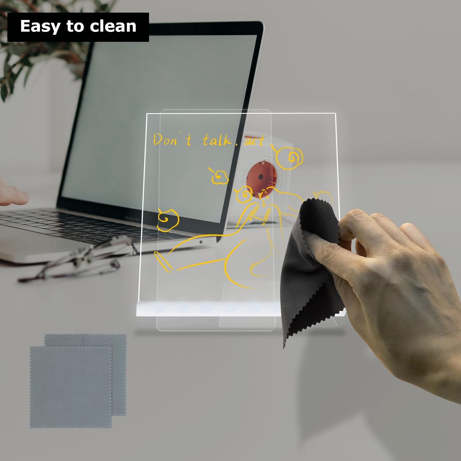 Dry erase board surface smooth, easy to clean, wipe with a damp cloth or paper towel.If the handwriting is retained for too long, it is more convenient to wipe with a wet cloth; Or spray the acrylic board with water and wipe it down.