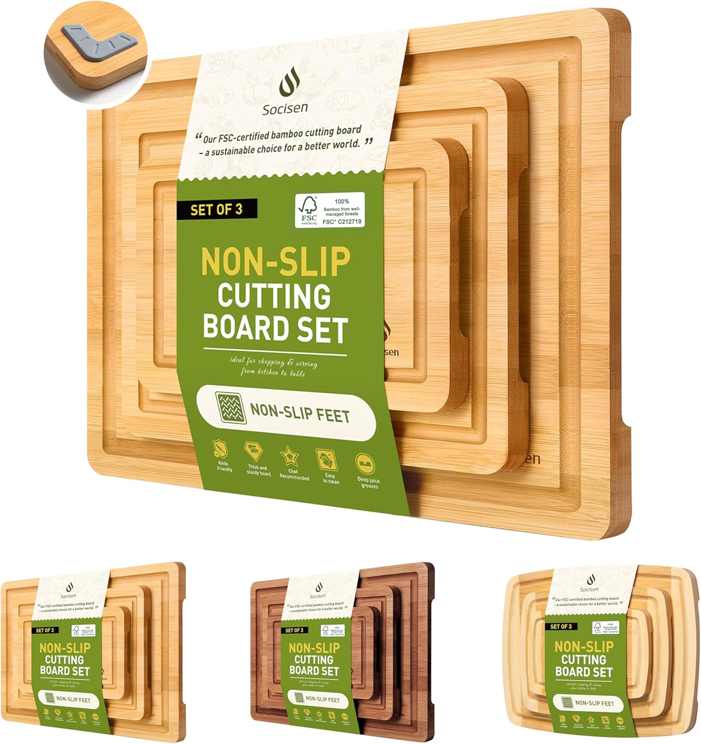 Non-Slip Design and Exceptional Craftsmanship: Our bamboo cutting board set are designed with a superior non-slip performance, featuring non-slip rubber feet that ensure the board remains stable on any countertop, providing a safe and efficient cutting experience. The meticulous craftsmanship extends to every detail, bamboo cutting board with carefully rounded edges for a comfortable grip and a construction that maintains shape and flatness over time.