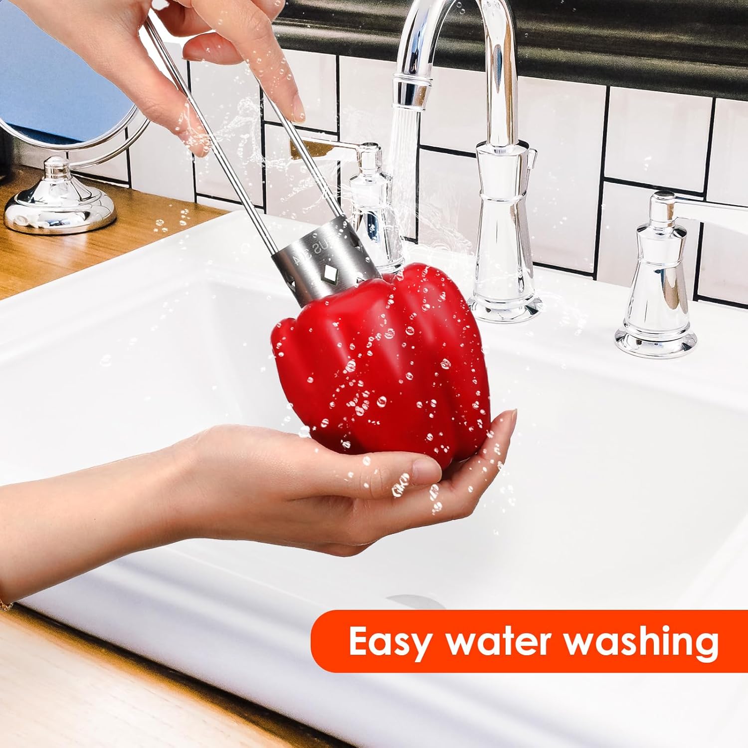 【Red Bell Pepper Seed Corer】The package include 1pcs vegetable corer, crafted from high-quality stainless steel, ensuring long-lasting durability. not only remove apple corer, but also can served as pepper seed corer remover saving you time and effort in the kitchen. This coolest kitchen gadgets is designed to de-seeding a wide range of fruits and vegetables