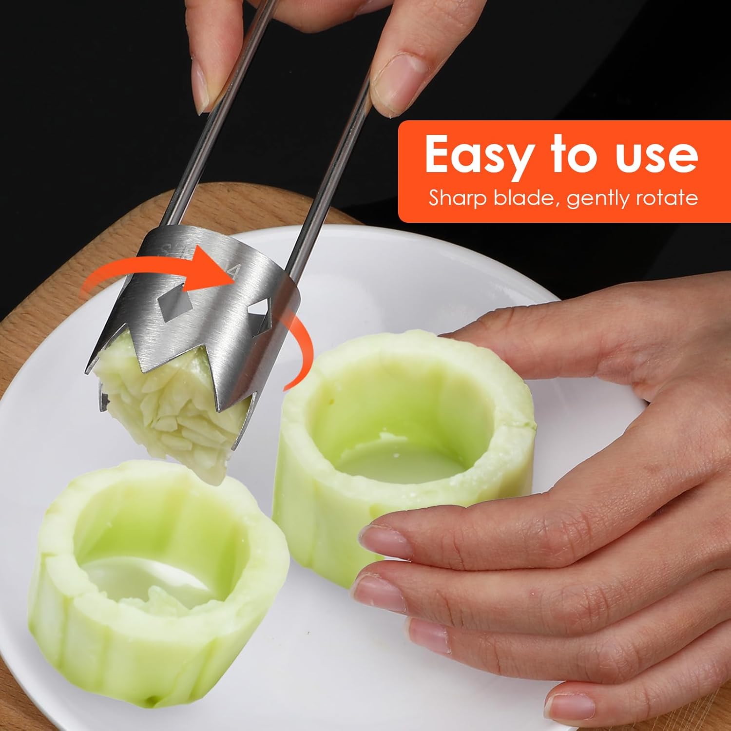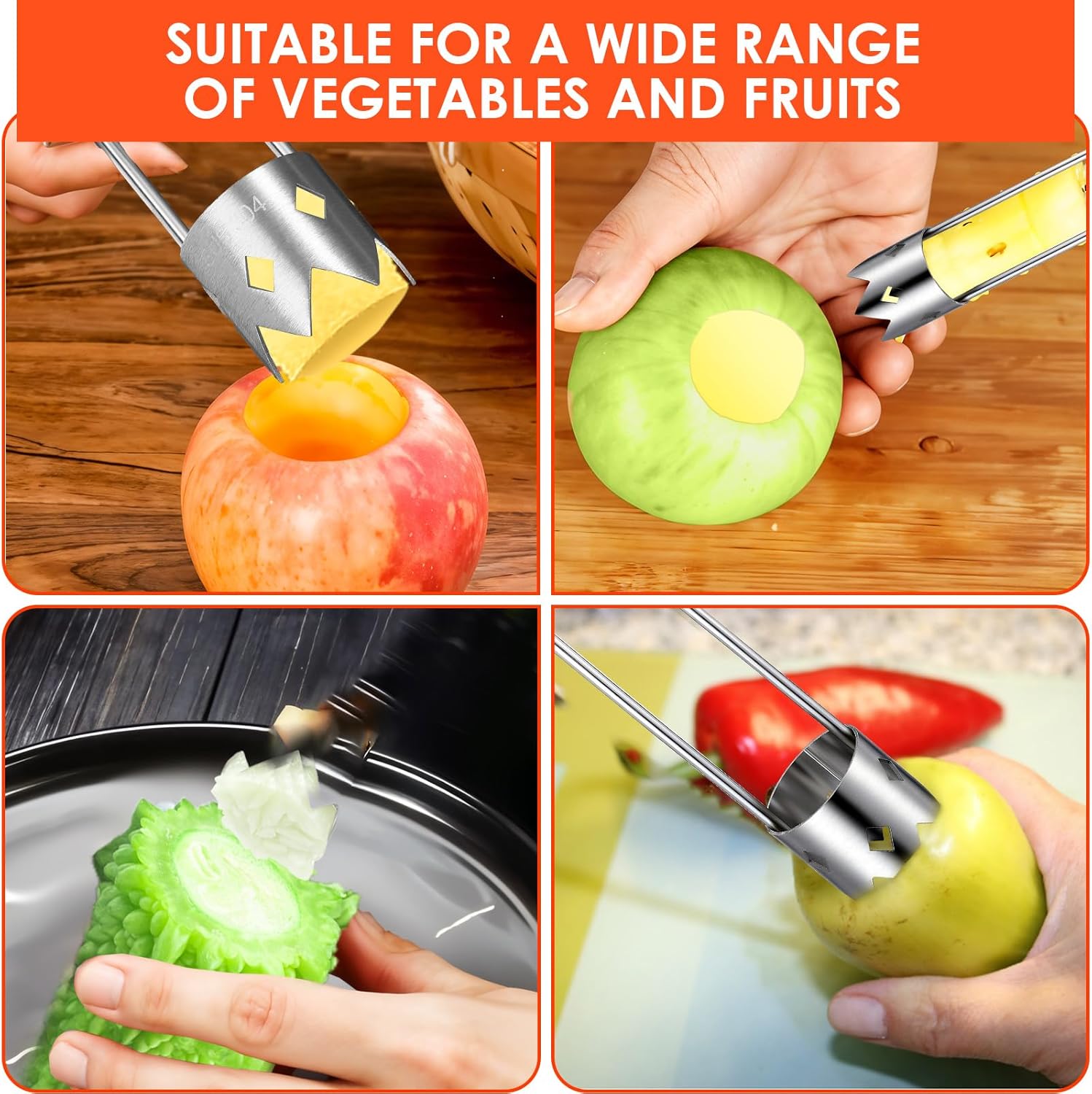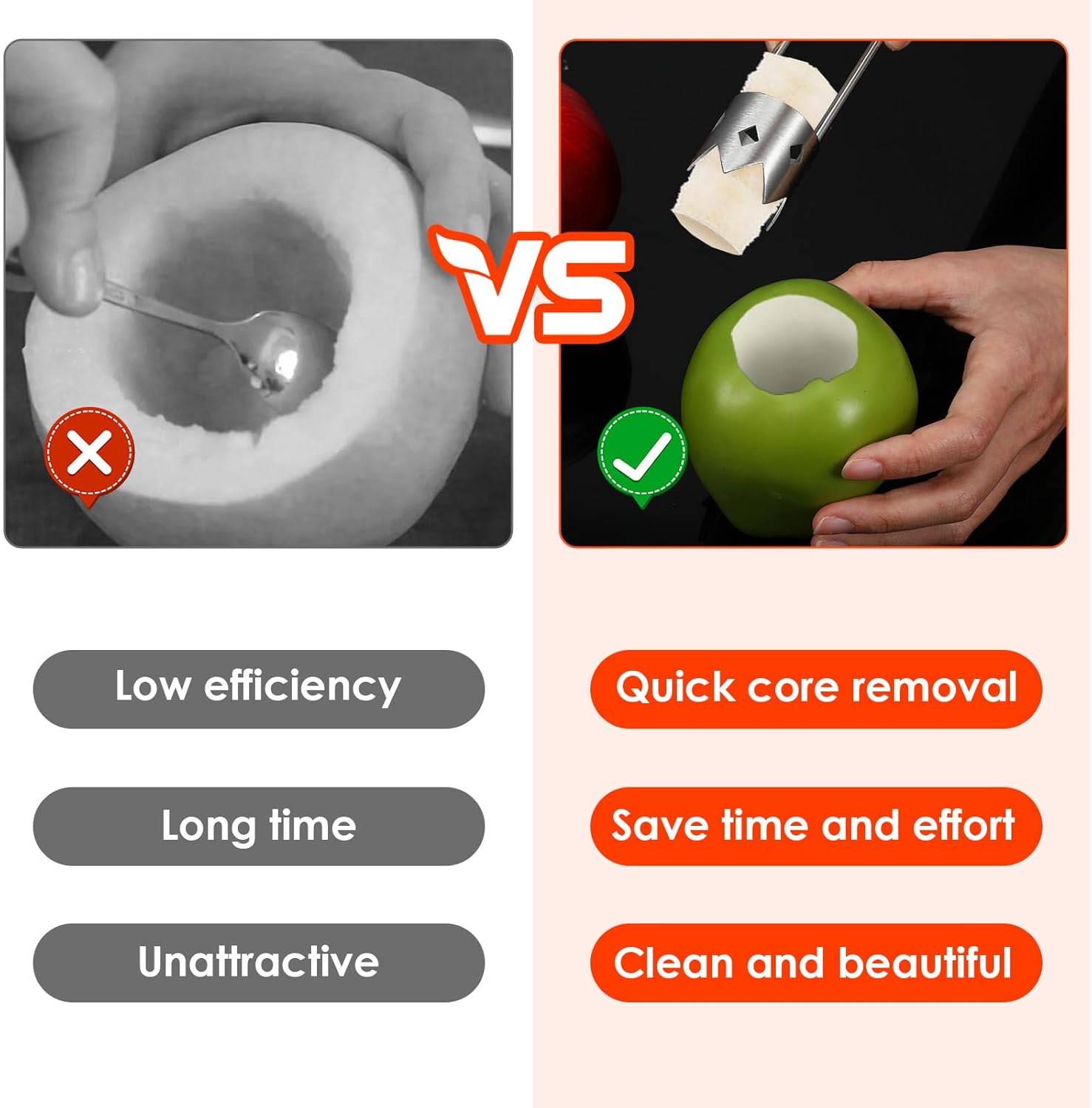 【Quick Core Removal】With the corer tool kitchen, removing cores from fruits and vegetables becomes a breeze. The serrated blade allows for quick and effortless core removal, eliminating the hassle of manual digging and saving you valuable time in the kitchen. The kitchen corer is a 2025 must-have for any home cook.