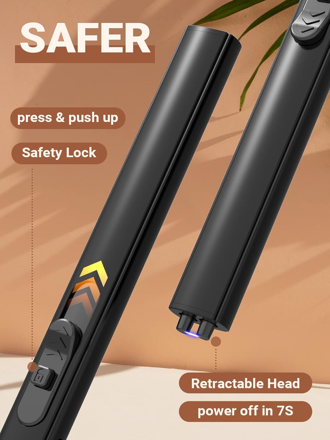 Easy to Use & Easy to Carry: The humanized non-slip push-type switch design ensures the safety of your family than other styles on the market. PRESS the safety lock and PUSH UP then arc lighters working right away. Pocket-sized, thin and light body for portable, rechargeable candle lighter is an elegant super-handy tool for your daily indoor & outdoor use. Very perfect for home, office, bedroom, bathroom, kitchen, grill, fireplace, fireworks, party, spa, traveling, cooking, camping, hiking, BBQ