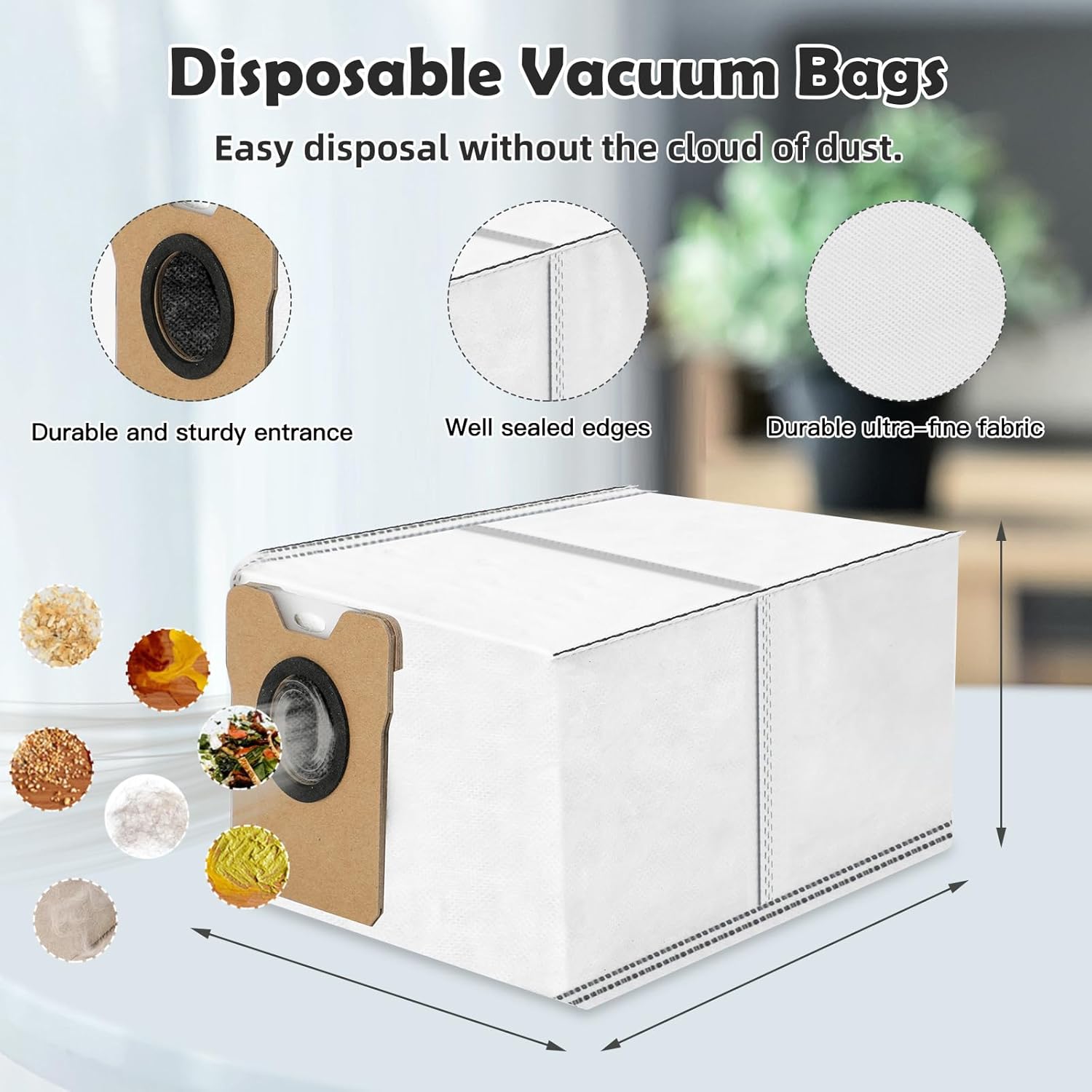 Value Pack: 1 Main Roller Brush,4 Hepa Filters,4 Mop Pads,4 Side Brush,6 3.6L Dust Bags,1 Cleaning Tool,1 Screwdriver. The C20 Omni replacement parts have the same functionality as the original parts