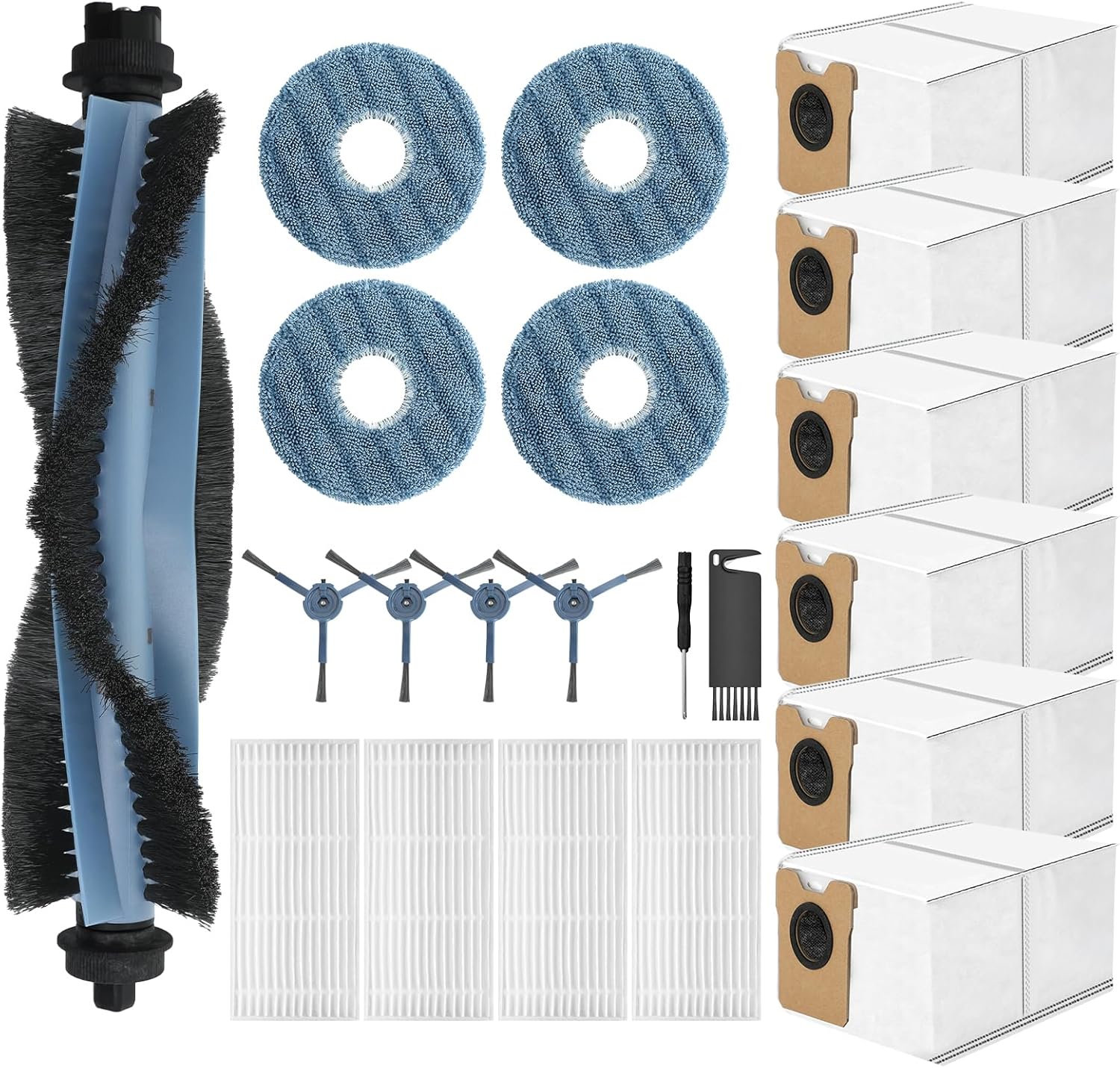 21 Pack Omni C20 Accessories Kit Replacement Compatible with Eufy Omni C20 Robot Vacuum Cleaner, 1 Main Roller Brush,4 Hepa Filters,4 Mop Pads,4 Side Brush,6 Dust Bags,1 Cleaning Tool,1 Screwdriver