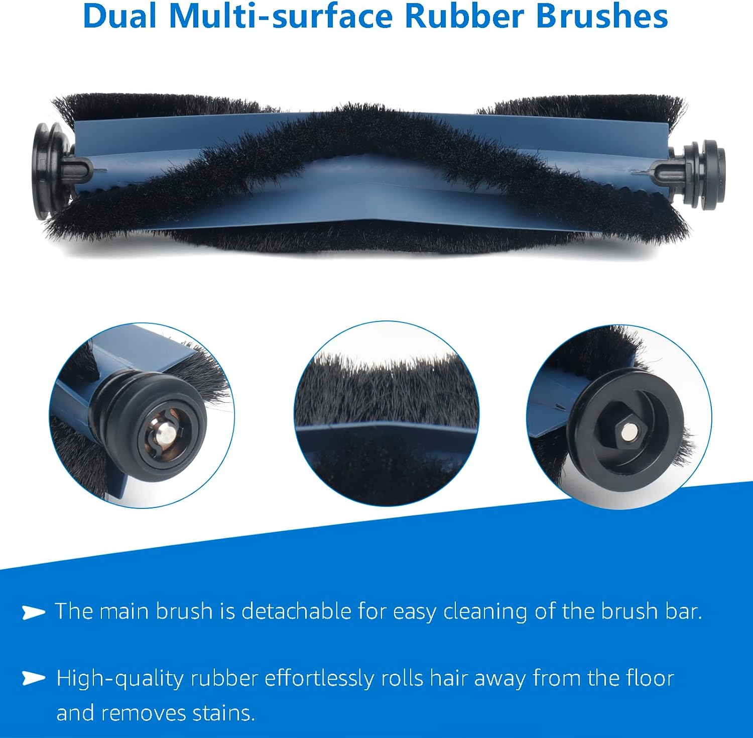【Excellent Performance】The high-quality roller main brush pairs perfectly with the X10 Pro Omni Robot Vacuum. The bristles are combined with the rubber brush. Our high-quality replacement brush can easily deep clean, capturing food residue, pet hair, etc. hidden in the carpet. The side brush is long and flexible, allowing it to reach deeper into corners and edges, giving you a true home cleaning experience.