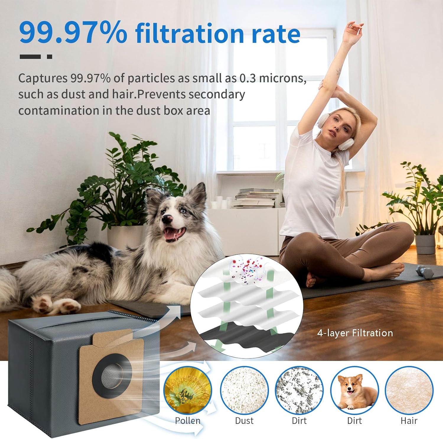 【High-Quality Materials】These filters, mops and dust bag accessories are made of high quality materials, which are wear-resistant and soft. They effectively help the vacuum cleaner clean your floors and effectively filter 99% of dust. The cloth can be washed and reused to easily clean various surface stains. The disposable dust bag is convenient for cleaning. A set of accessories can easily meet the needs of your vacuum cleaner robot.