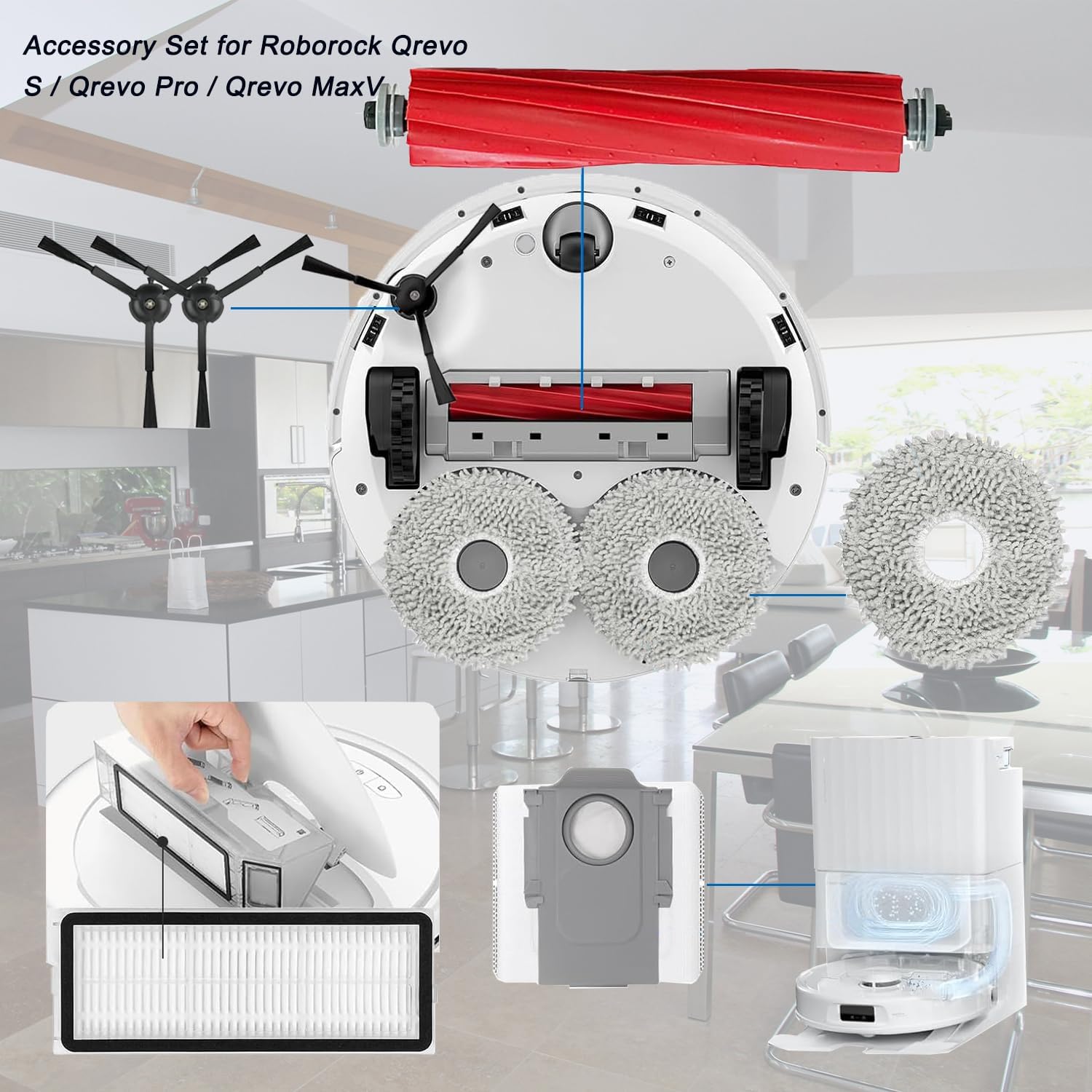 [Replacement for Roborock Qrevo S] The accessories replacement compatible with Roborock Qrevo S, Qrevo Pro, Qrevo MaxV [Not for Qrevo] Robot Vacuum Cleaner. Please check your machine model before ordering.