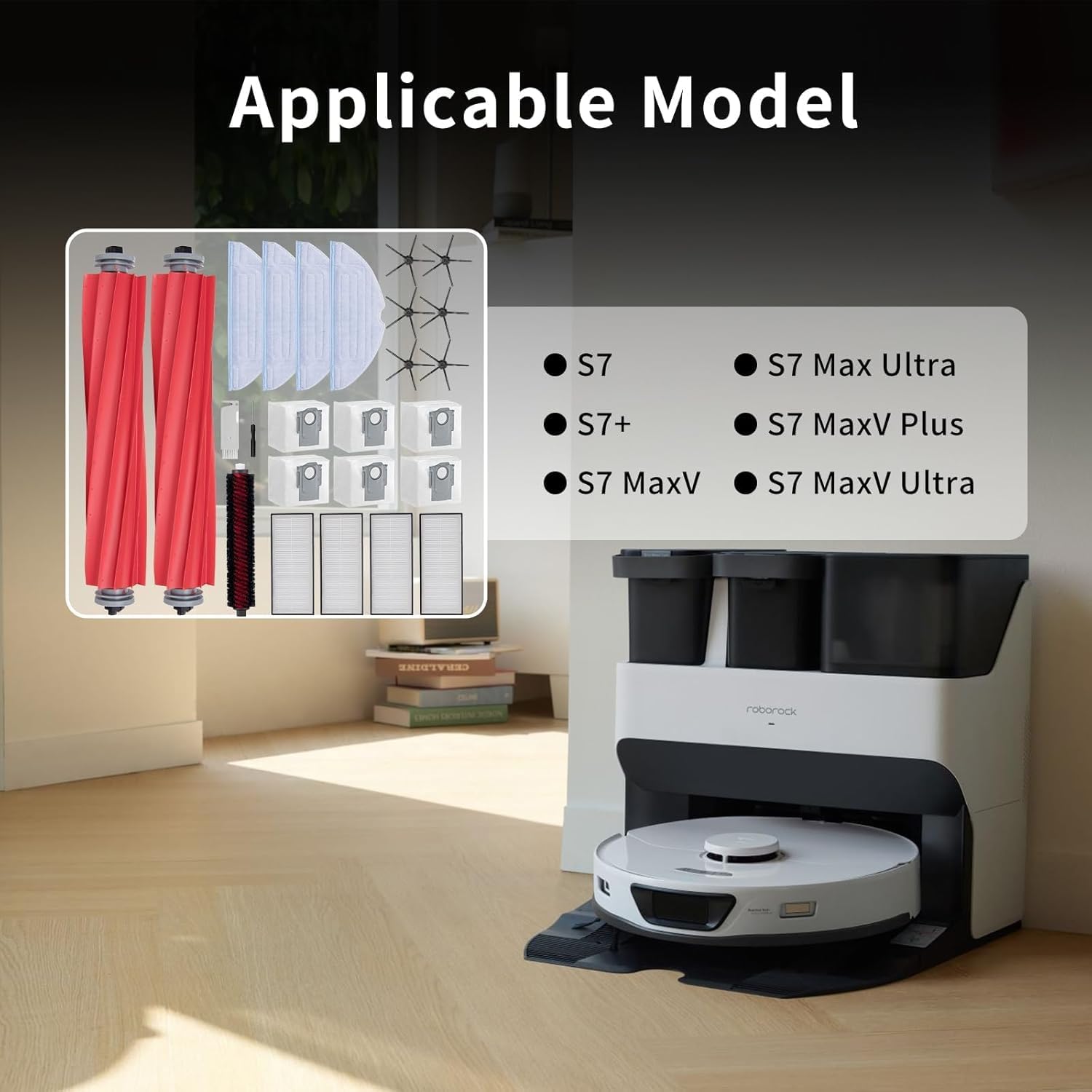 【Application】: 25 Pack Replacement Parts Fit for Roborock S7 MaxV Ultra,S7 MaxV Plus,S7 Max Ultra,S7 MaxV,S7,S7+ Robot Vacuum Cleaner Robot Vacuum Cleaner