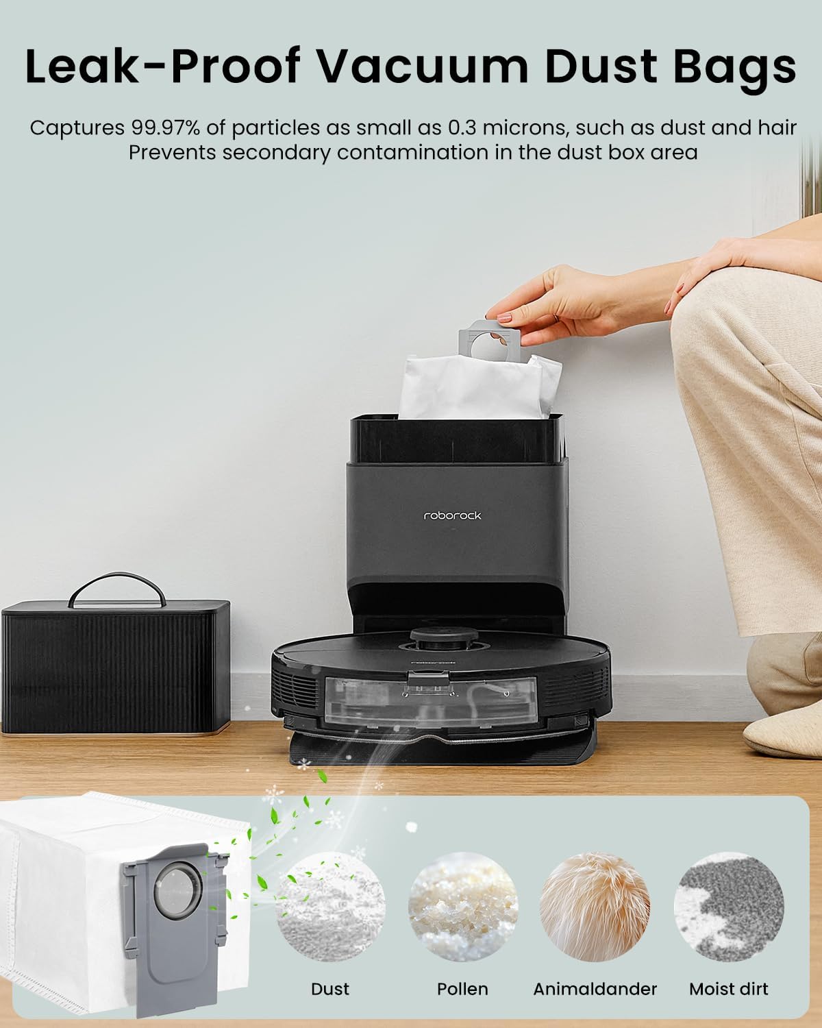 ✅Excellent Performance: Rrochio Accessories Kit for Roborock Q Revo replacement parts feature materials for exceptional performance. Rubber main brush remove stains like hidden debris in carpets, including pet hair while protecting floors. The vacuum dust bag fits snugly, preventing leaks. High-absorbency cloths guard against water damage. Soft side brushes tackle dust in tight spaces. The filter eliminates 99.97% of particles as small as 0.3 microns.