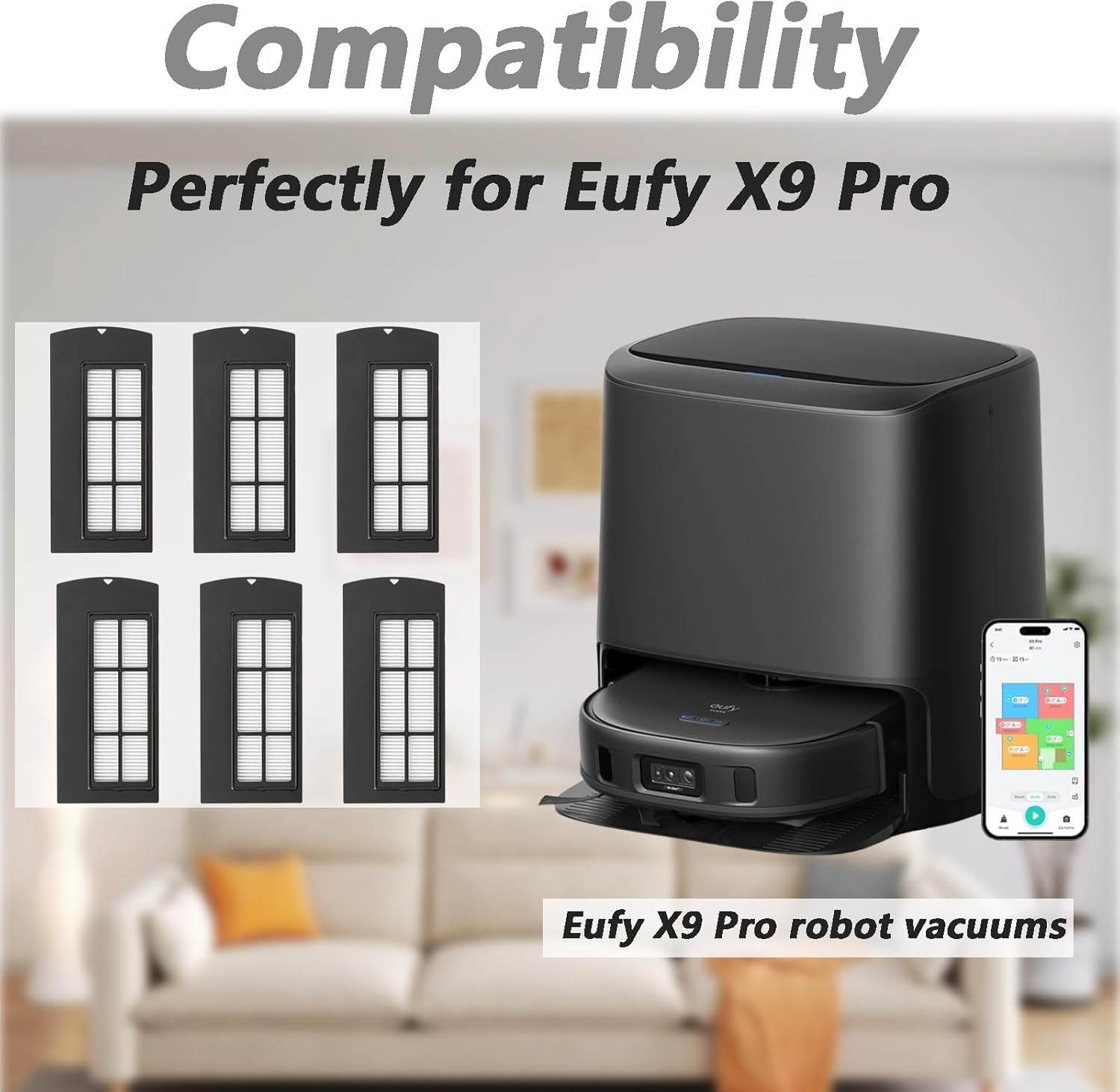 Compatible Models: 6pcs hepa filters for Eufy X9 Pro Vacuum Cleaner, please confirm the machine model before purchasing.
