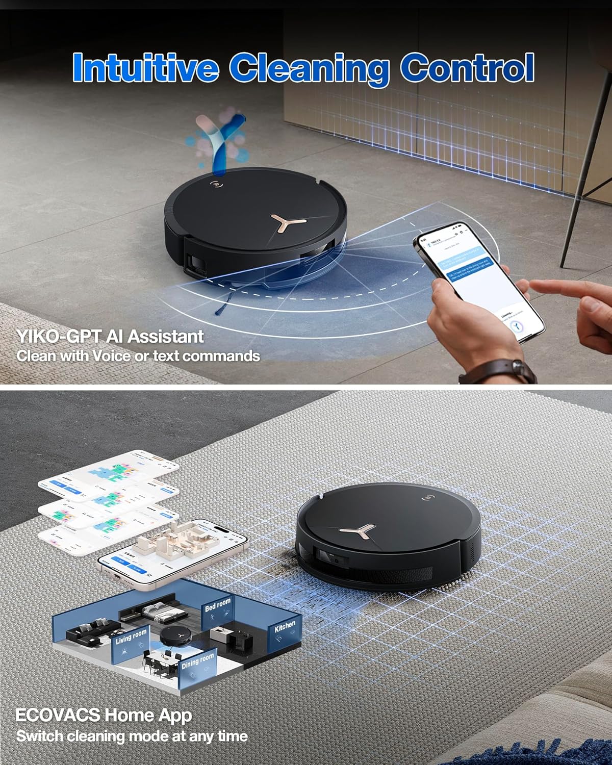 Smart Home Compatibility and Voice Control – Hands-Free Convenience – Matter smart home compatible, DEEBOT T50 MAX PRO OMNI will integrate seamlessly into your home via OTA update in Q2. Use Amazon Alexa, Google Assistant, or other Matter-enabled devices to control cleaning with simple voice commands. With YIKO-GPT AI, enjoy instant voice and text-based controls for a truly effortless cleaning experience.