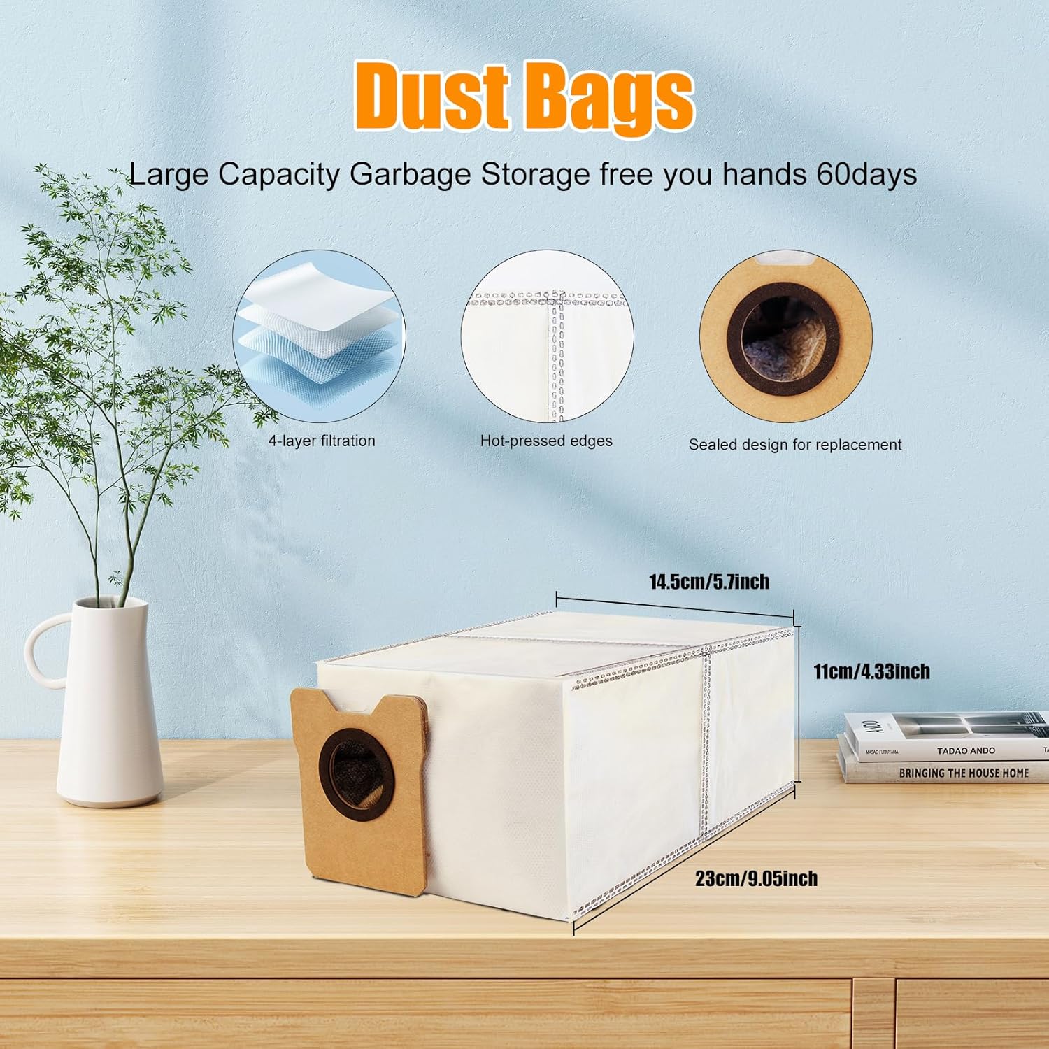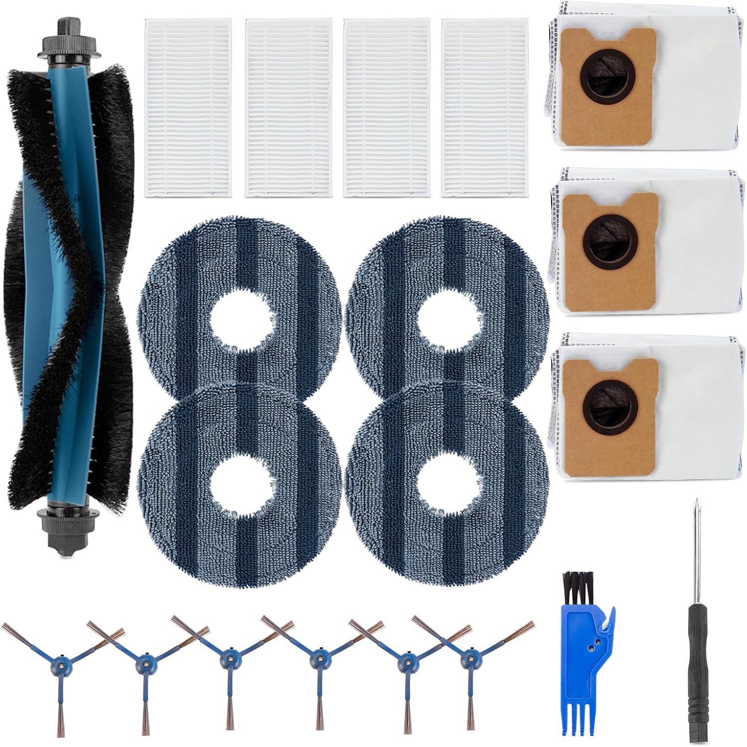 Package Including: 20PCS vacuum parts, 1*Main Brush, 4*HEPA Filters, 6*Side Brushes, 4*Mop Cloth Pads,3*Dust Bags, 1*Cleaning Tool, 1*Screwdrivers, accessories kits fit for Eufy omni C20 vacuum cleaner