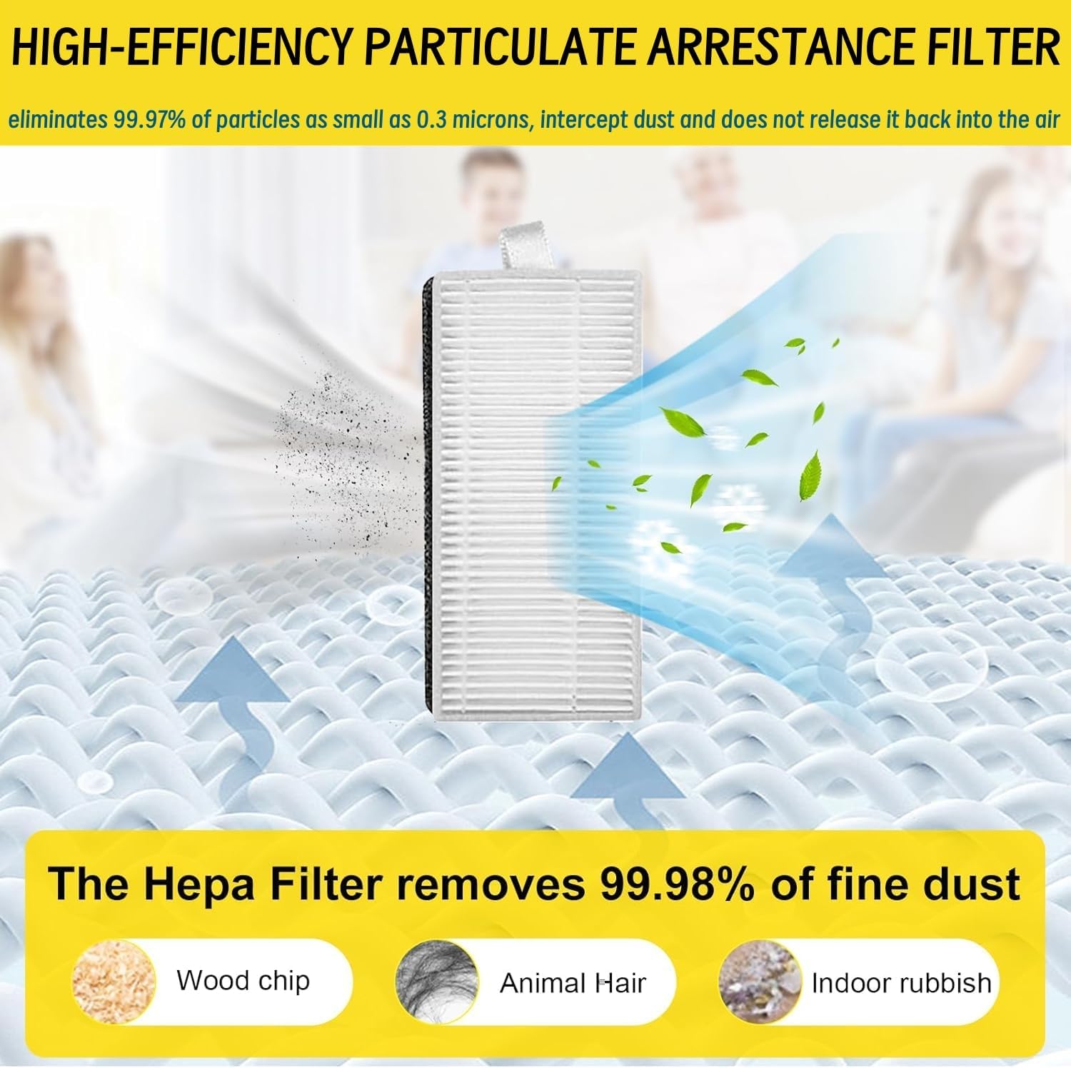 【HIGH-QUALITY CONSTRUCTION】Crafted from premium materials including ABS, and ultra-fine fibers. The Roller Brush pick up pet hair, dirt, dust, and debris, remove stains while protecting floors, works well on floor types—hardwood, carpet, and tile. The Side Brush helps you get deep into corners and right up against walls and base boards to ensure superior cleaning area. High-efficiency particulate arrestance filter eliminates 99.97% of particles as small as 0.3 microns, intercept dust and does not release it back into the air.