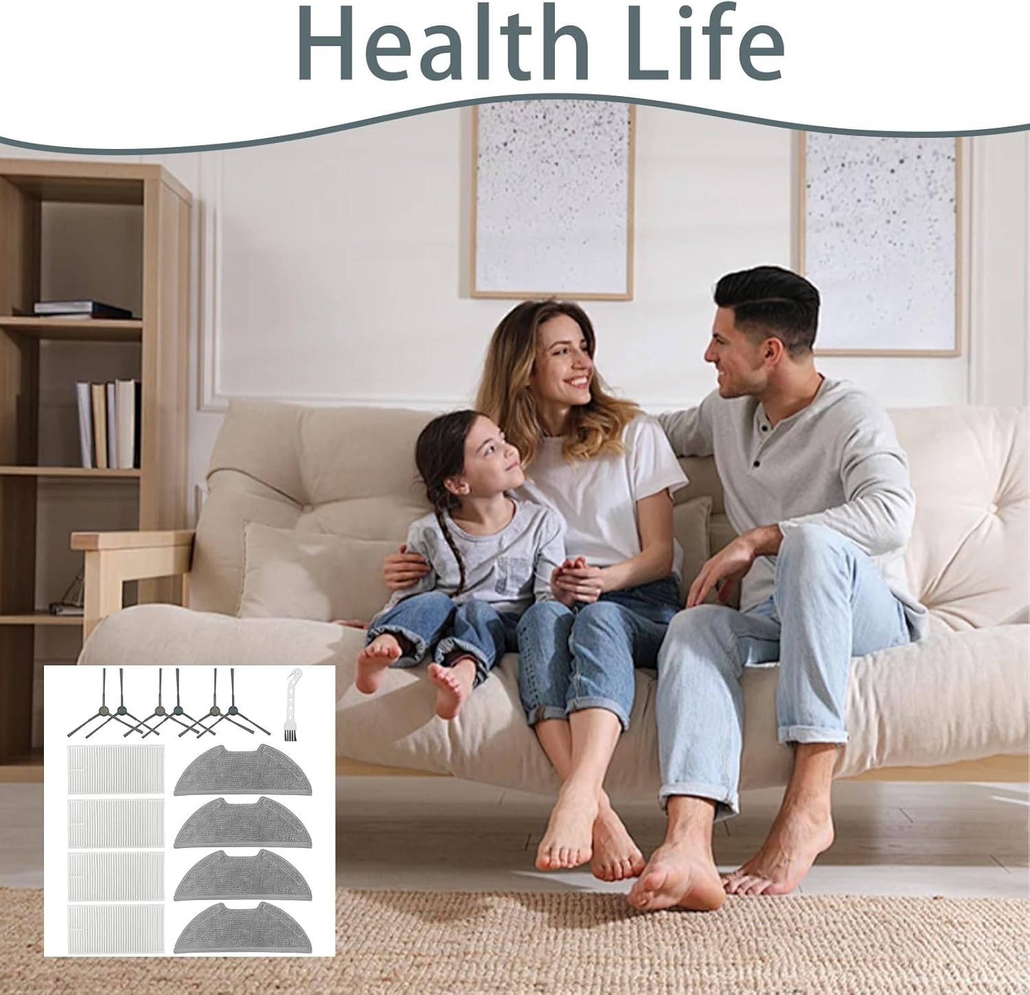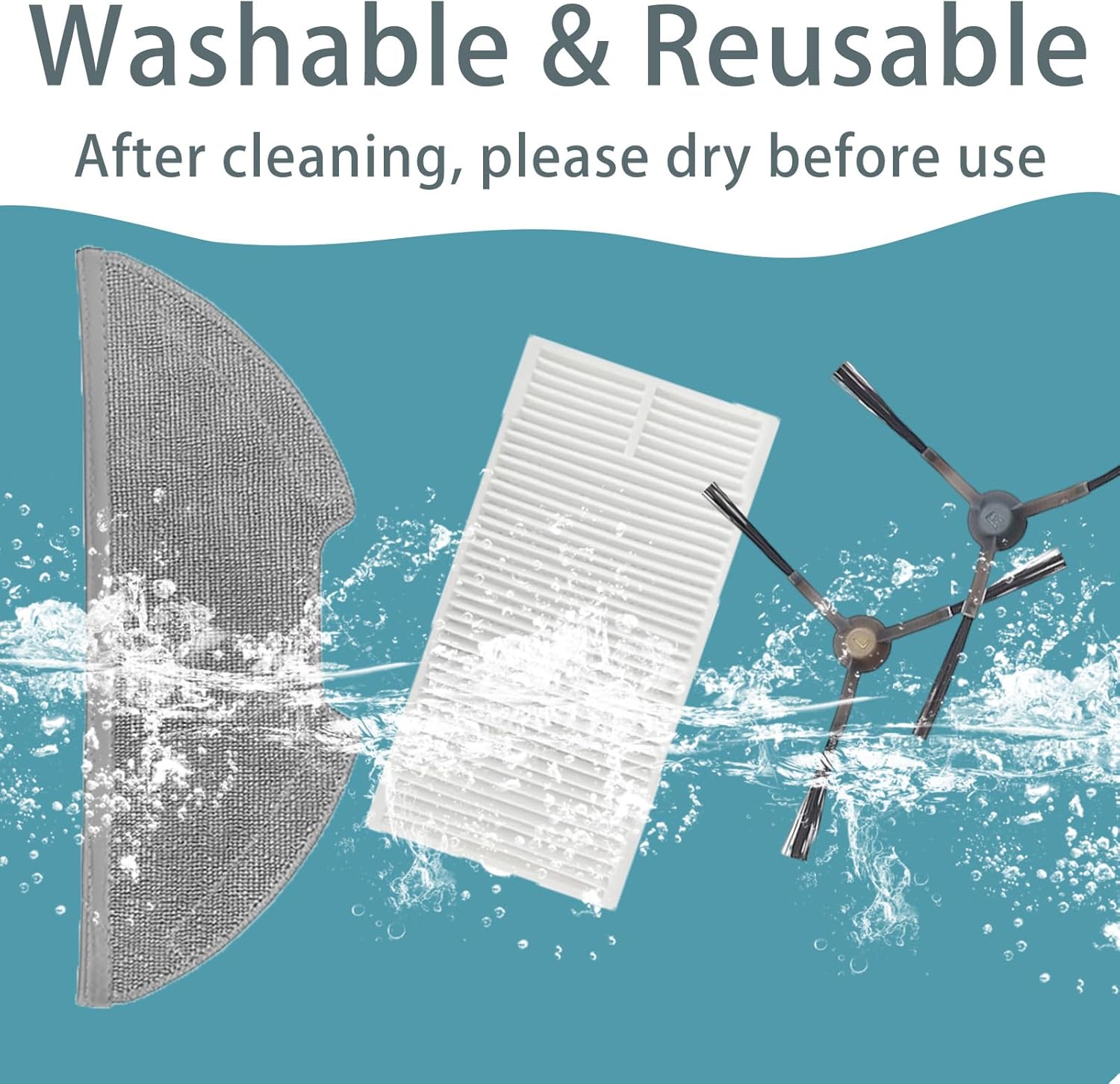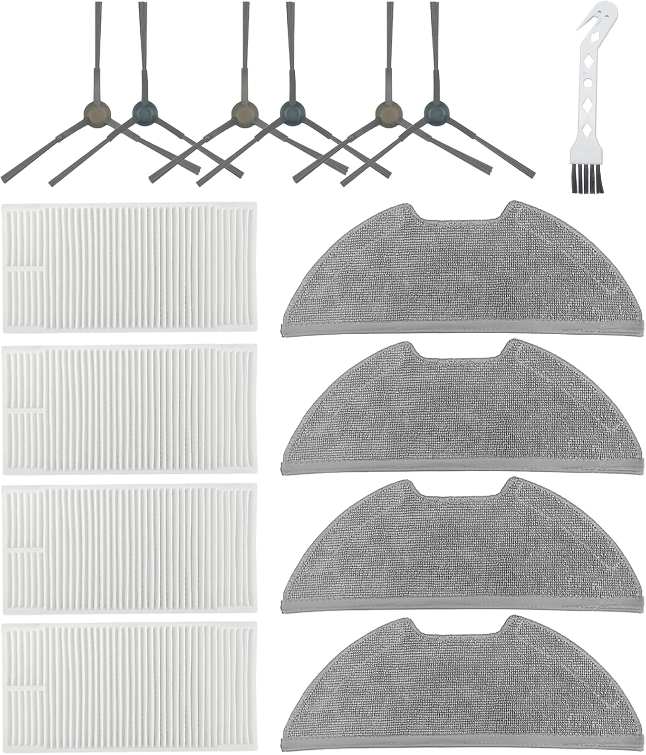 15PCS Replacement Parts for Eureka E20 Plus Robot Vacuum Cleaner, Accessories Kits Include 4 HEPA Filters, 4 Mopping Cloths, 6 Side Brushes, 1 Cleaning Tool