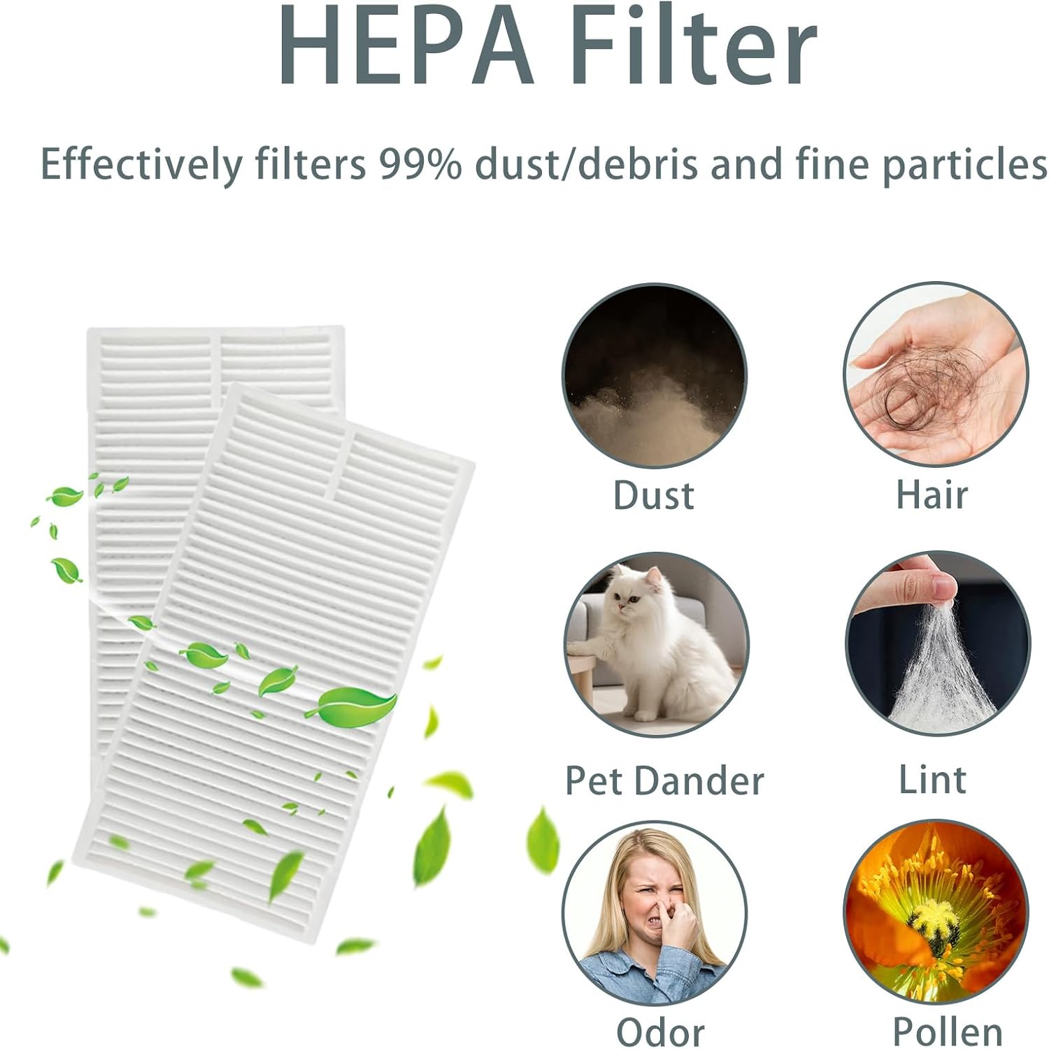 High Filtration: The HEPA filter is made of multiple layers of filter cloth, it effectively filters 99% dust/debris and fine particles