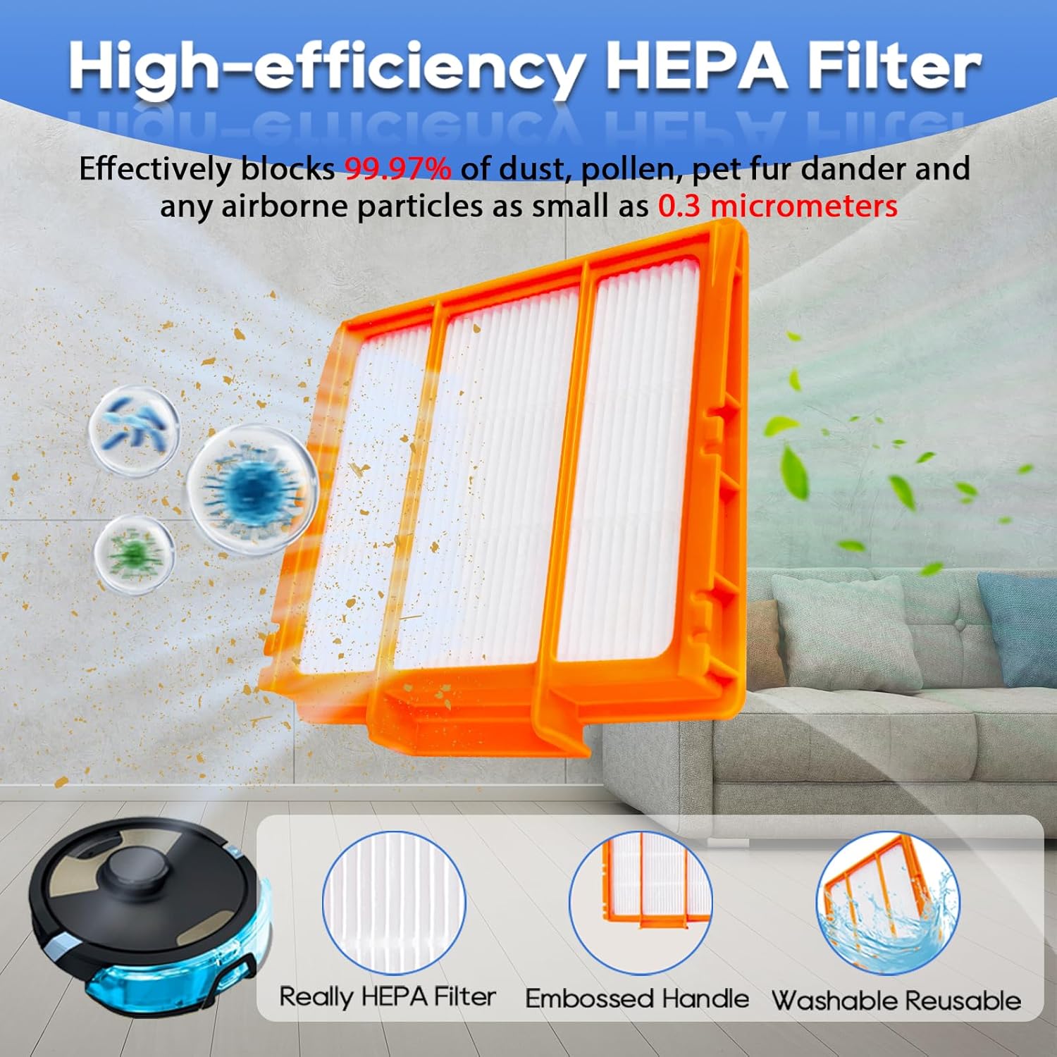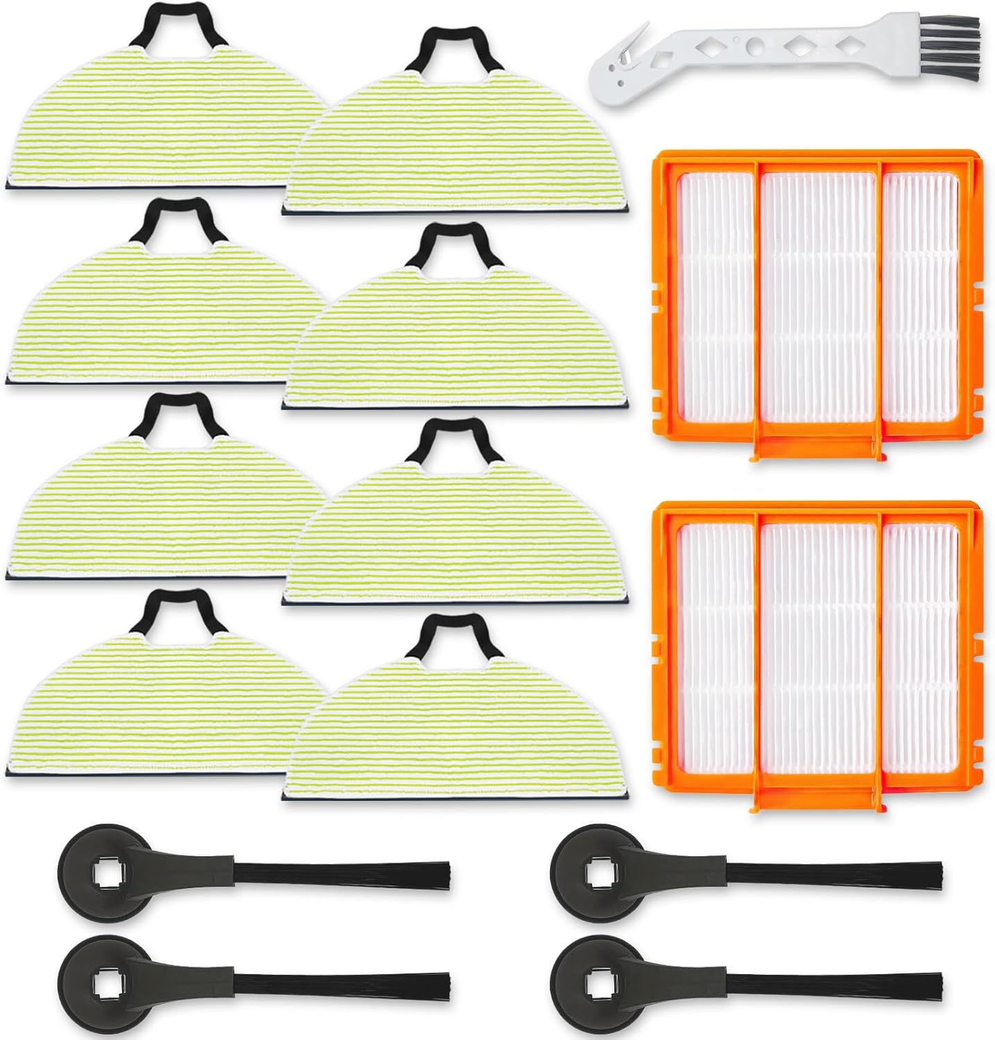 👜Includes: 8 high-quality microfiber mop pads, 2 durable filters, and 4 replacement side brushes. The filter replacement and mop pads are designed to work together to effectively remove dust, dirt, and debris from various surfaces, providing a thorough and efficient cleaning experience.