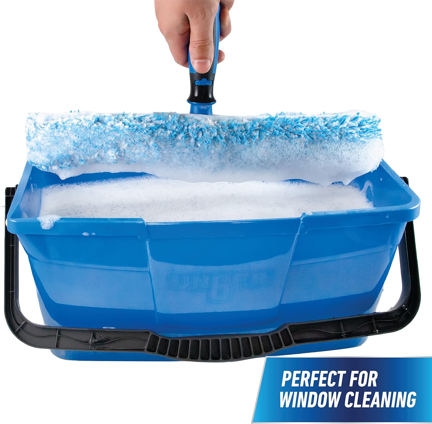 Customers find the cleaning bucket perfect in size, accommodating both mops and window cleaning tools, and appreciate its sturdy construction with a handle that supports full buckets. The bucket works well with Unger window washing tools and solar panel cleaning, while being lightweight and easy to carry. They find it effective for various cleaning tasks and consider it good value for money.