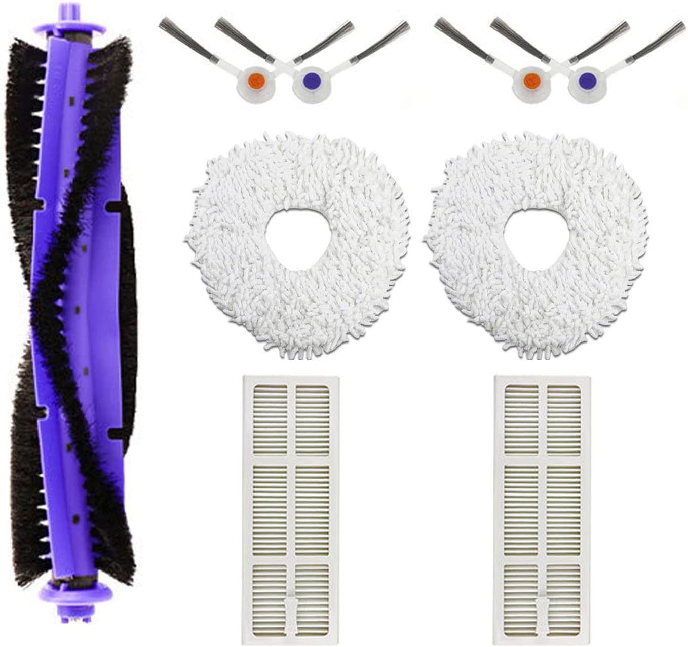 Package includes 1 Main Brush,4 Side brushes,2 Hepa Filters,2 Mop Pads