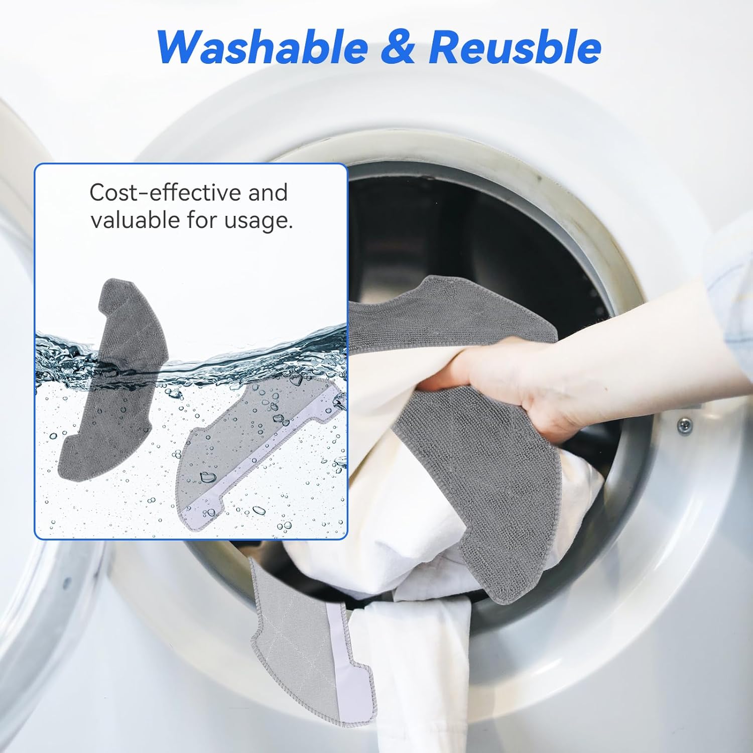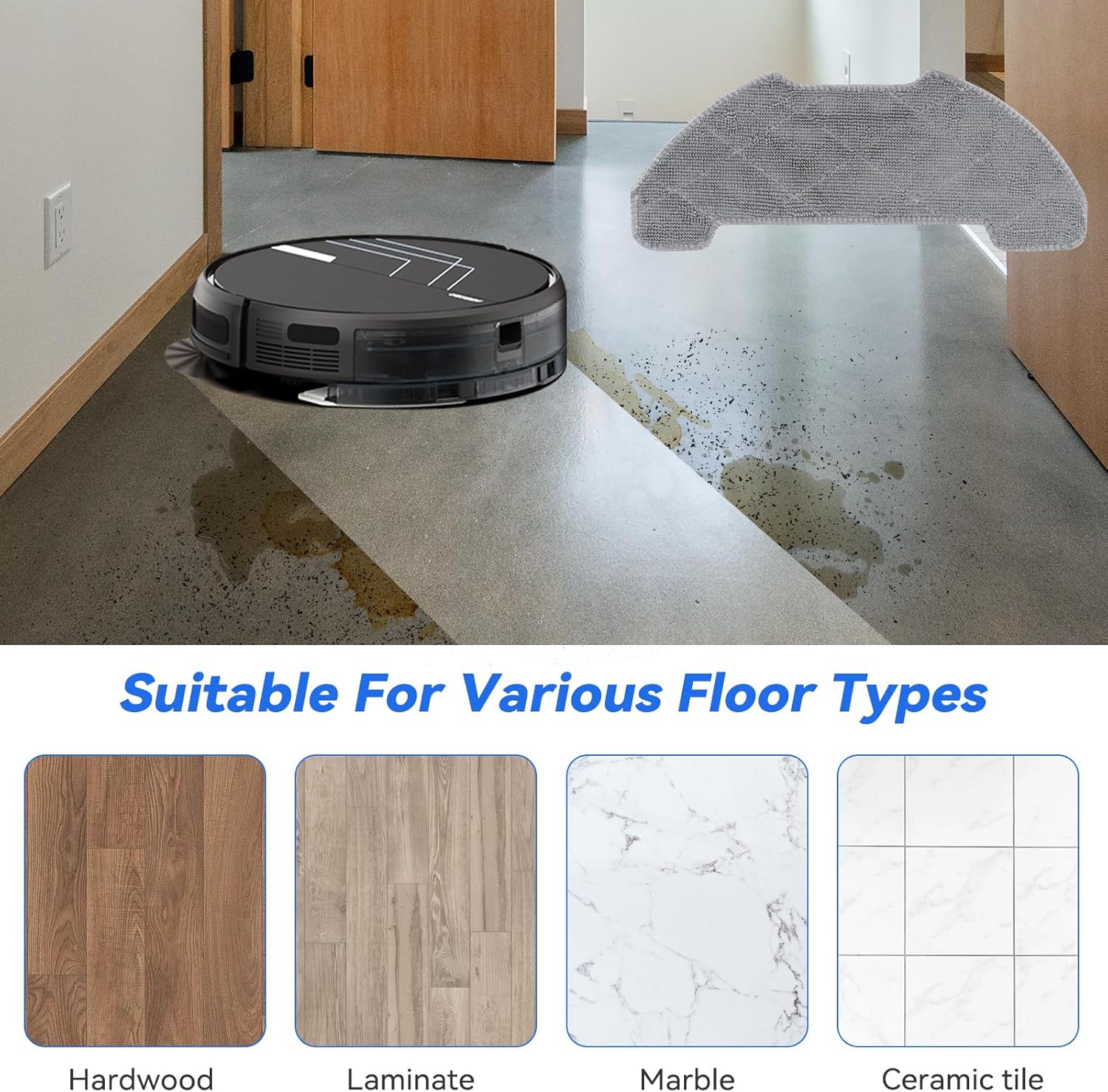【Durable and Washable】The vacuum cleaner mop pad has strong and long-lasting cleaning power. The mopping pad is more absorbent and dries quickly, can be washed in washing machine, and be reused many times. Easily handle all kinds of stains on the floor, such as marks, juice residue, oil stains, etc. The pads is machine washable and reusable.
