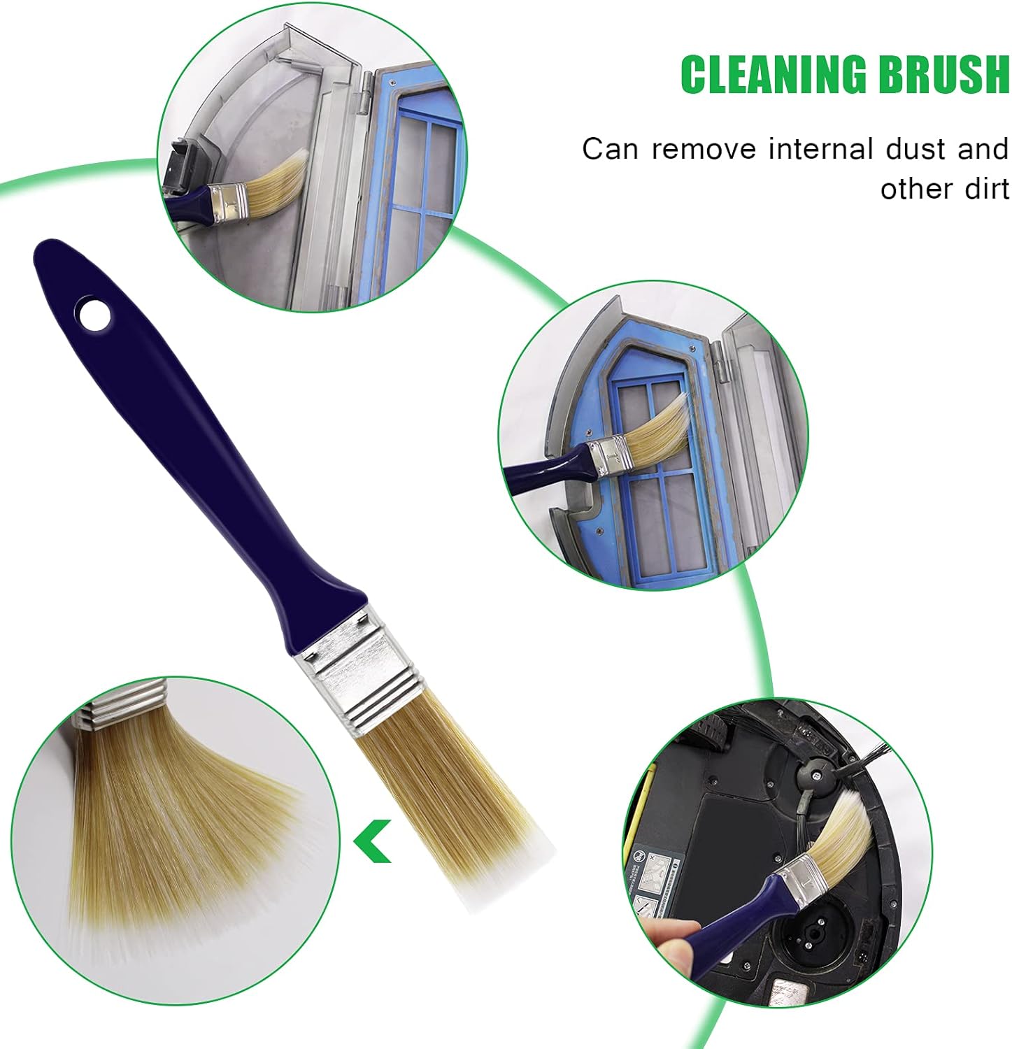 HOW THE BRUSHES WORK: A brush with hook can scratch the hair in the vacuum roller, one small soft brush is used for detailing cleaning, one Nylon brush can clean the surface of the vacuum, and another long brush can sweep the dust of dust box.