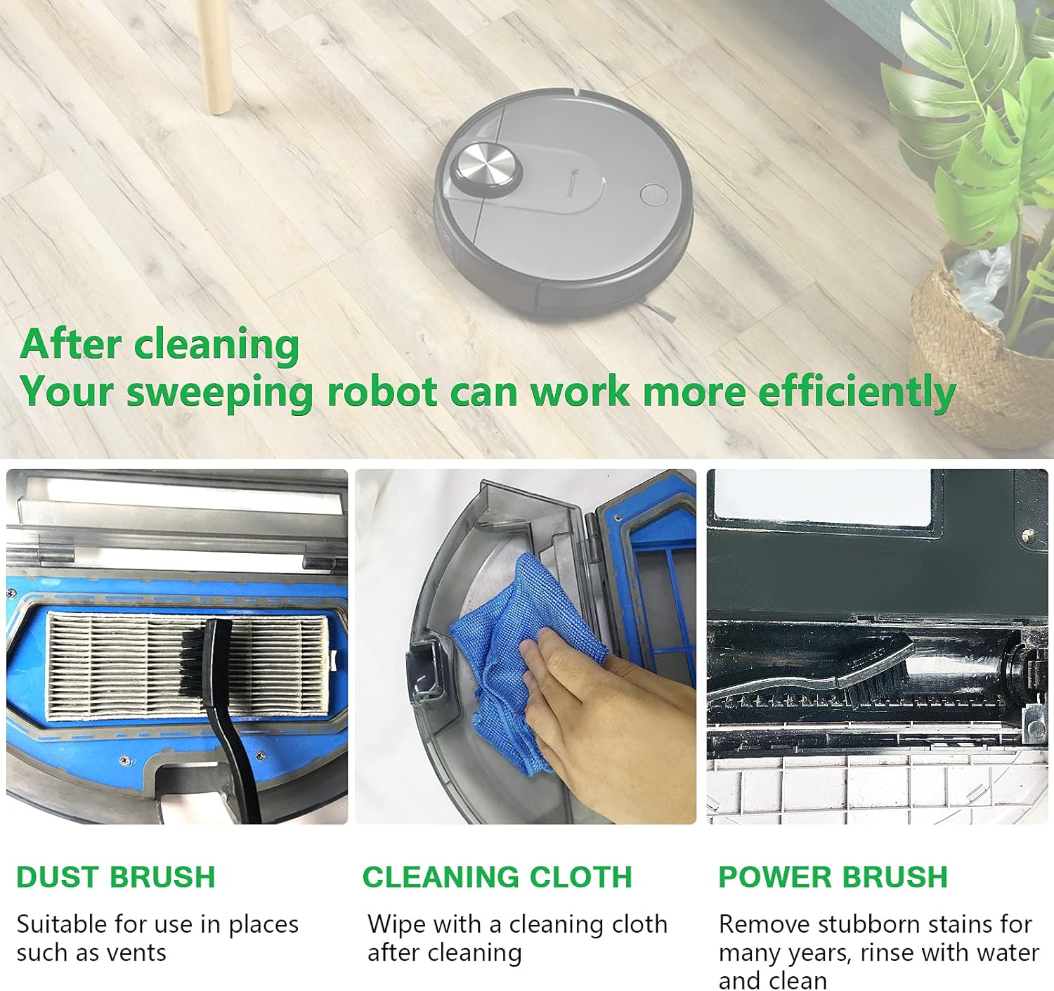 Midukit vacuum cleaning kit for robot, dyson. Vacuum cleaning tool includes Cleaning Brush, tweezers, screwdriver (Phillips, Slotted), double-end cleaning brush, 2 in 1 hair cutter hooks, Cleaning Cloth. Easier to clean the hair inside the roller, dust, sand and mud.