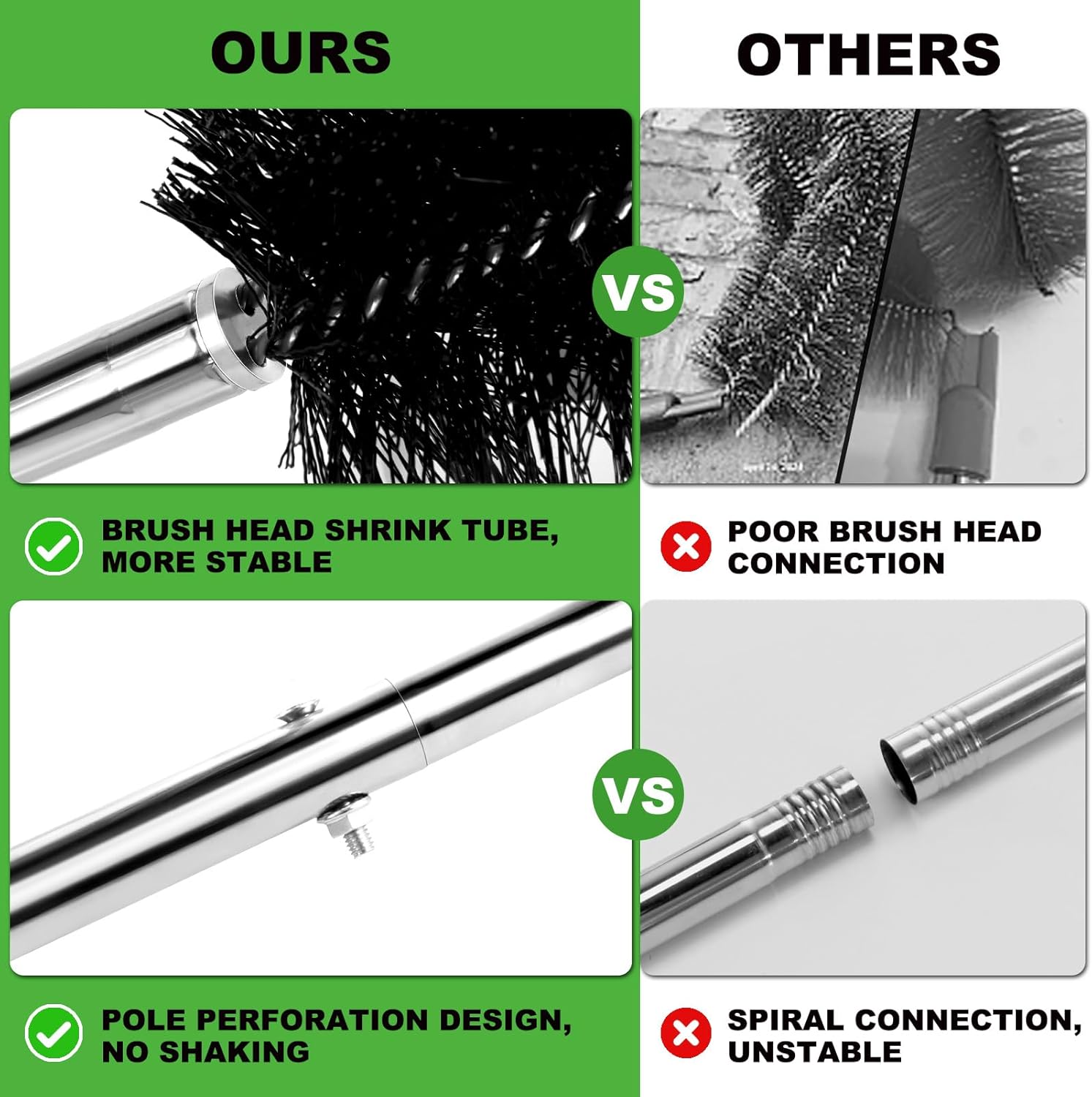 Upgraded Reinforced Structure Materials: Gutter cleaning tools are made from an excellent stainless steel steel body and a sturdy nylon bristle brush head, the iron wire of the brush head is 2.8 mm, using welding technology the iron wire of the brush head is welded on the pole head, hardness of the bristles is 45 wires. It helps you easily remove debris from your gutters and keep them operating efficiently.