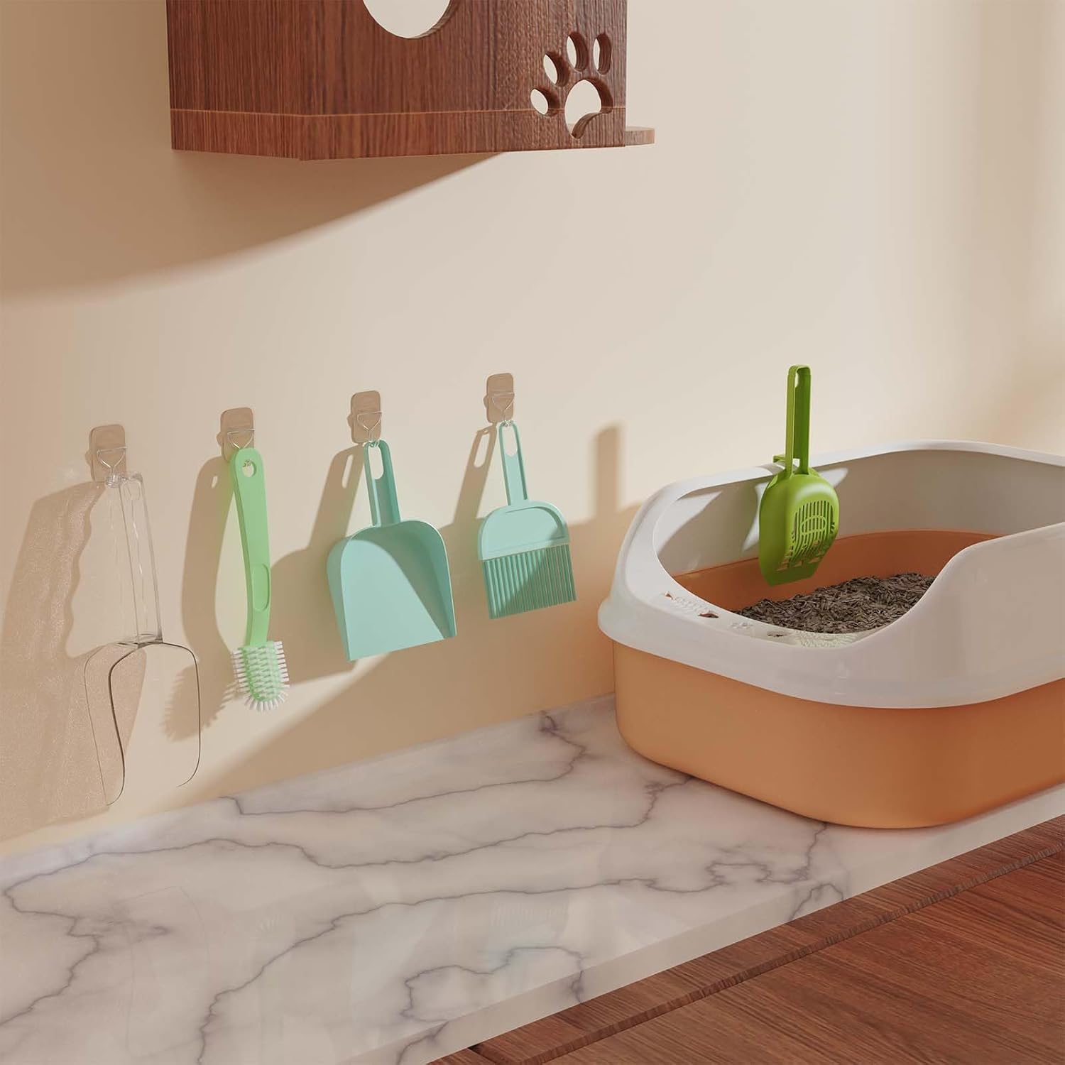Comprehensive Cleaning Solution: Our cat litter scooper kit includes a cleaning brush for tackling tougher messes and 4 paste hooks that are perfect for securing your cleaning tools within reach. Whether you have a traditional litter box or an automatic cat litter machine, this kit has you covered.