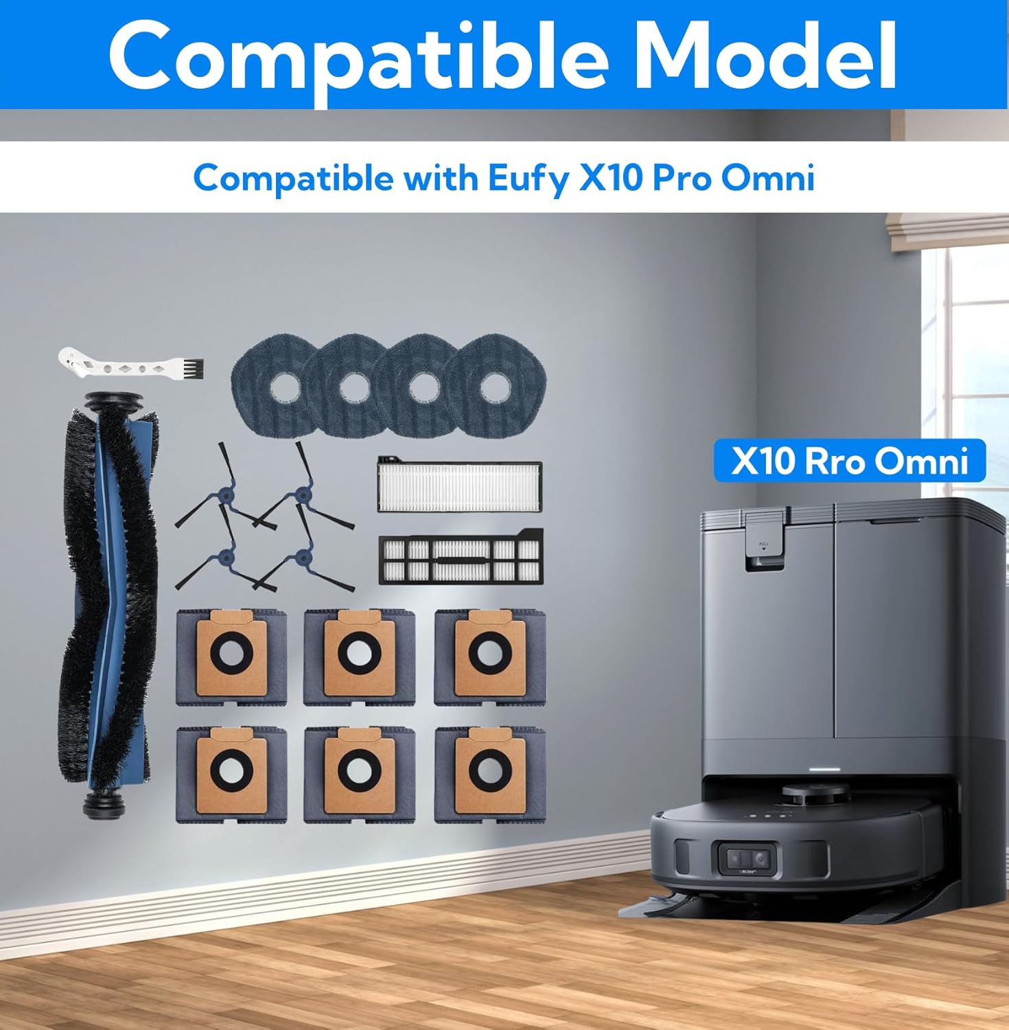 Compatible with: This Accessories kit is perfectly compatible with eufy X10 Pro Omni robot vacuum cleaner. Please check your vacuum cleaner model before purchasing. (Attention: Not compatible with X8)