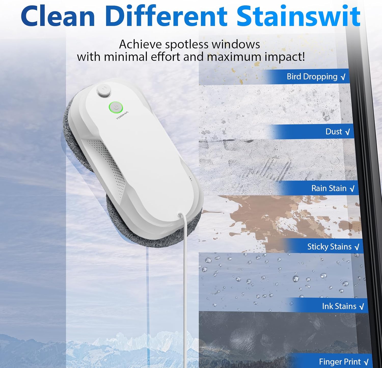 The Tosima window cleaner robot is equipped with a low-noise NIDEC brushless motor and an ultra-large frequency converter, which can effectively clean dirt on different surfaces.
