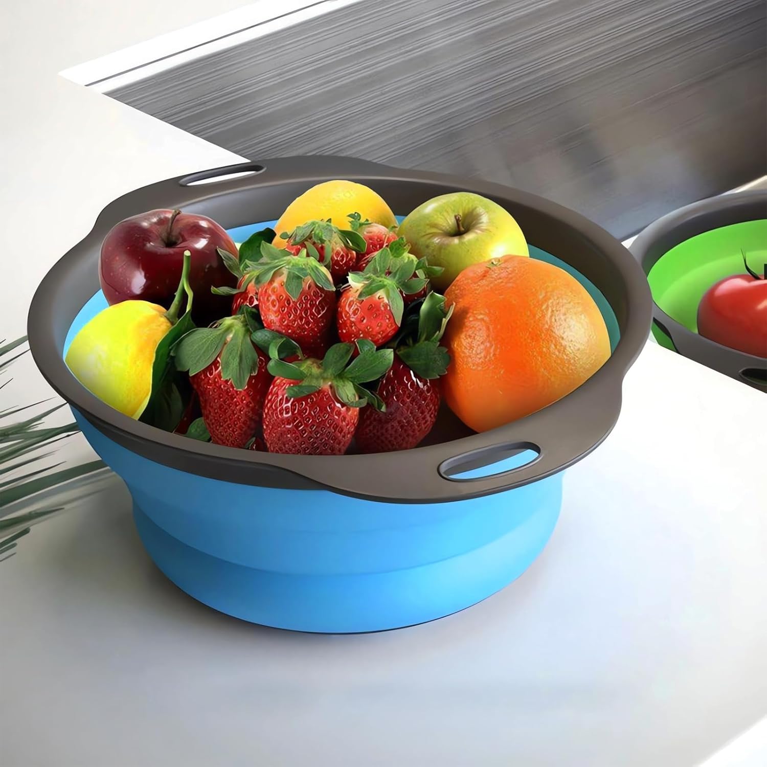 Collapsible Colander Set of 3, Space-Saving Foldable Strainer for Kitchen, 3 Sizes Food Strainer for Draining Pasta, Vegetable and Fruit, Kitchen Gadgets for Home Use and Outdoor Camping (Blue)
