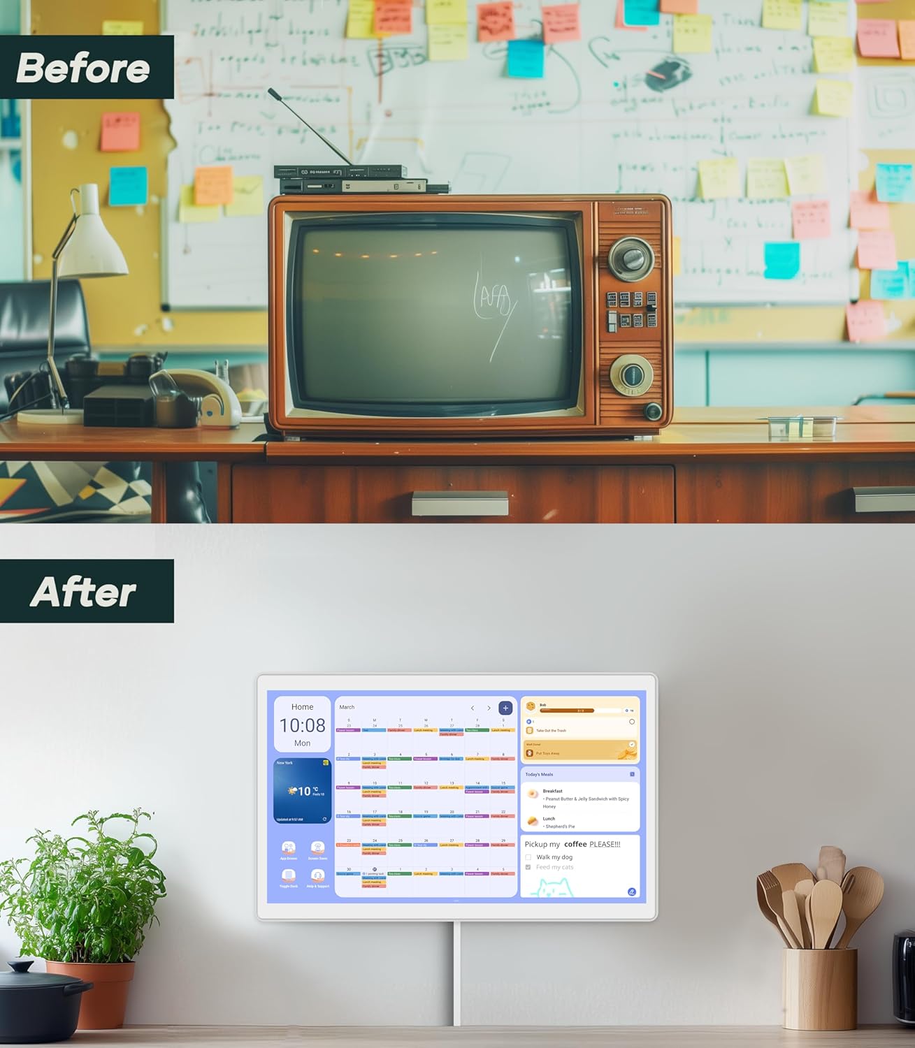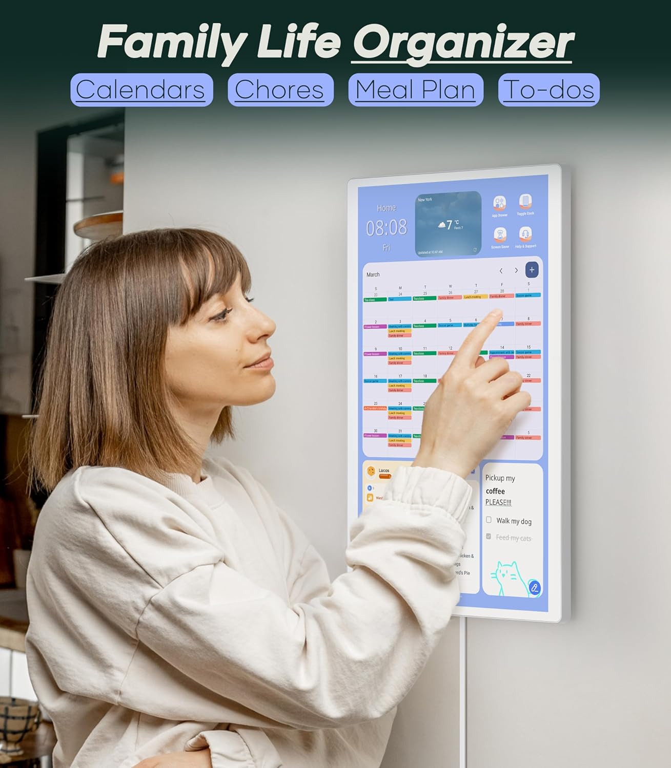 Versatile Family Assistant: This versatile digital calendar planner goes beyond a calendar; it helps you create meal plans, access recipes, and watch cooking tutorials. With a large touch screen, you can easily access smart home apps to control your existing devices. It also serves as a digital picture frame to showcase cherished family memories.