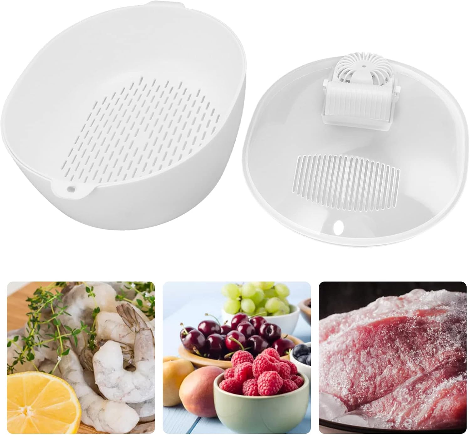 MULTIPLE FUNCTIONS: Featuring a double layer design, it is not only suitable for the quick defrosting of frozen food, but also for the of fruits and vegetables, and is a useful kitchen tool for family and outdoor parties with drainage function.