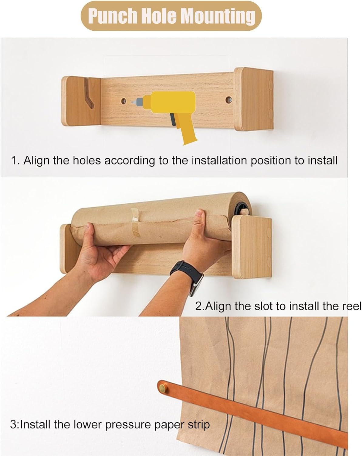 ❹Wall Mounted Kraft Paper Roll Dispenser: Our paper roll dispenser is made of solid wood plate with baking paint, adds natural rustic beauty to your home, And you can use it for a long time, just replace a roll of kraft paper if you are running out of it.