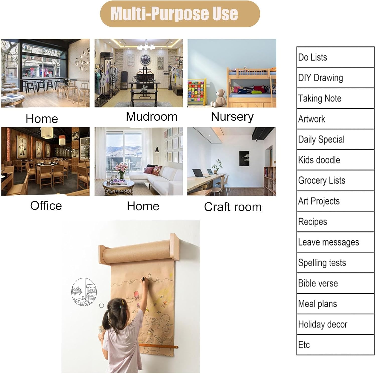 This Wall Mounted Kraft Paper Dispenser makes a great home accessory in the home, kitchen, restaurant It can also fit in a casual office workplace. The modern and functional design. If you are a thinker, the wall mounted paper dispenser offers you an effective way to write down your ideas and analysis or a to-do list for home, displaying restaurant specials, or letting kids utilize it to play endless games.Specifications:Item : Wall Mounted Kraft Paper Dispenser & CutterColor : WoodMaterial : WoodKraft Paper : 50m long ( Weighing 120g per square meter )Size : 45cm/17.7in , 64cm/25.2inAfter the enclosed vellum is used up, you could buy the corresponding size of vellum locallyFeatures:Beautiful hardware, sturdy, thick paperSuper easy install also which is hugeIn addition, it is an ideal wall artGreat product for crafting studio or an art classroom.Perfect for To-Do Lists, Daily Specials, Menus and other Note Takingreduces desk or table-top clutter, but includes all the functionalityeasy cut bar lets quickly dispose of old creations to create new onesFrom an art station to a grocery list to a letter board replacement,for Artwork, drawingcan be applied to various occasions, such as coffee shops, study rooms, offices, kitchen, restaurantsPackage includes:1 Roll of wall mounted kraft paper(Includes mounting accessories)Note:Manual measurement, there are some reasonable errorItems may slightly different from photo in terms of color due to the lighting during photo shooting or the monitor’s displayPictures for reference, the specific size to the size of the purchase
