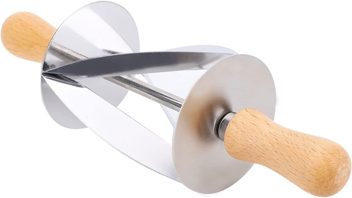 【Perfect Design】Crossed blade design, a rolling wheel with wood handle, Just an easy roll, you can get three even pieces of dough. Simple and practical to use, croissant cutter is a very good kitchen baking helper, bringing much convenience to your baking.