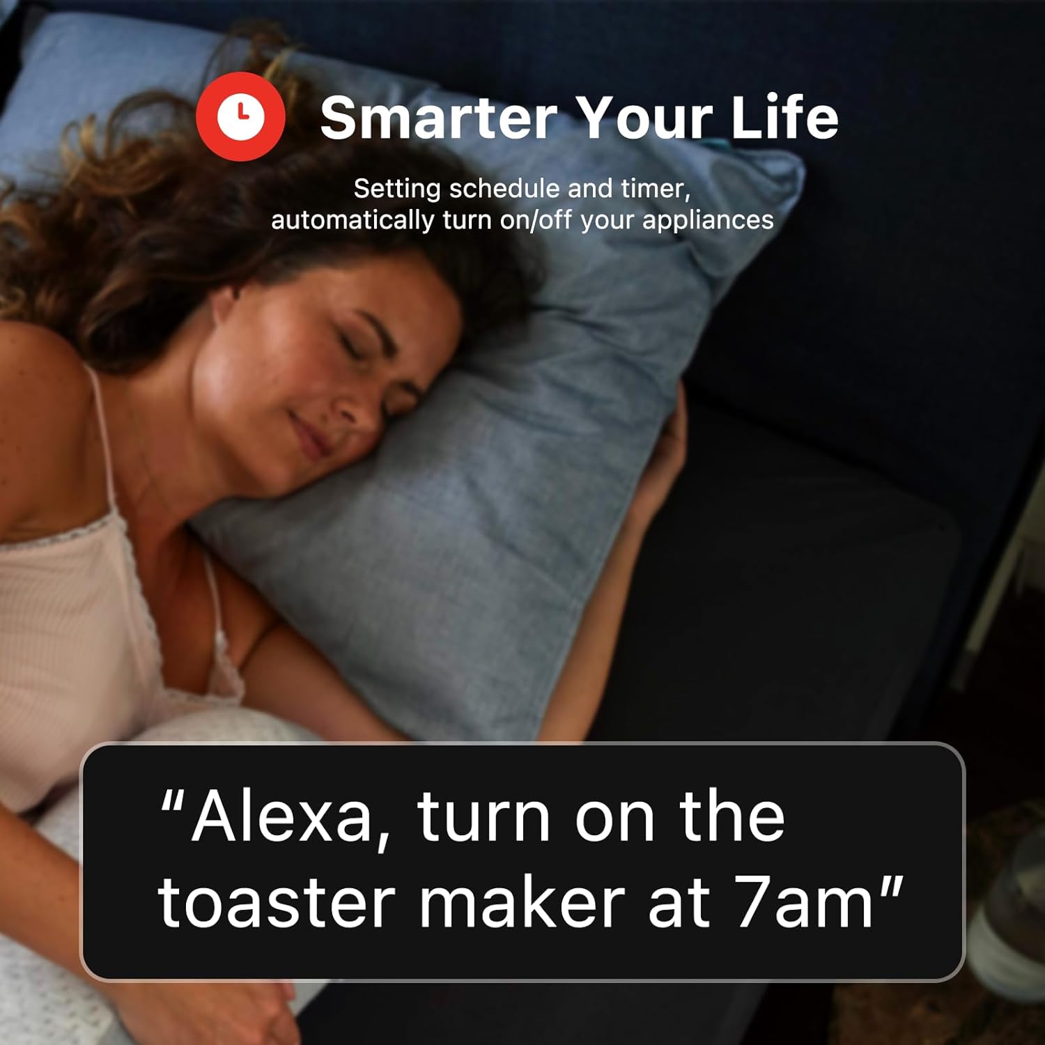 HOME AUTOMATION: Intelligent life starts with automatically turning on the coffee maker and toaster, enjoy a leisure breakfast. With more features, you can place a mount of plugs in one group, so that you can control all the plugs in the group with one click.