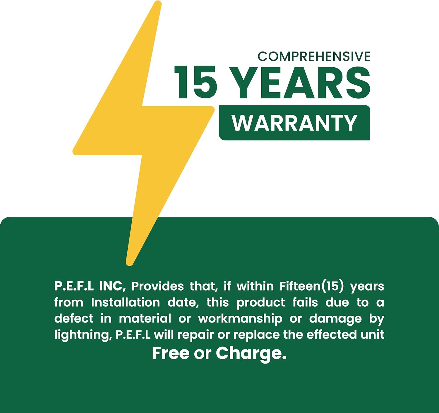 Comprehensive Protection with Warranty: Protects your home or office from electrical surges caused by lightning, power outages, and grid disturbances. Get a Fifteen (15) year comprehensive Warranty.