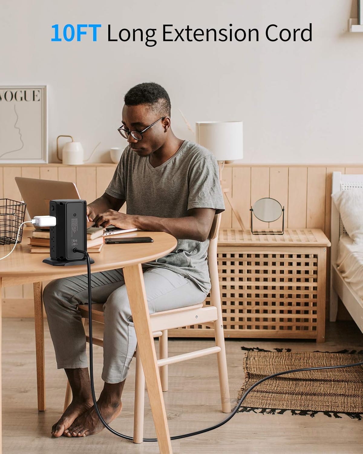 10 FT Tower Power Strip — Ideal for Desktop, Nightstand, Home, Office, Dorm Room & More