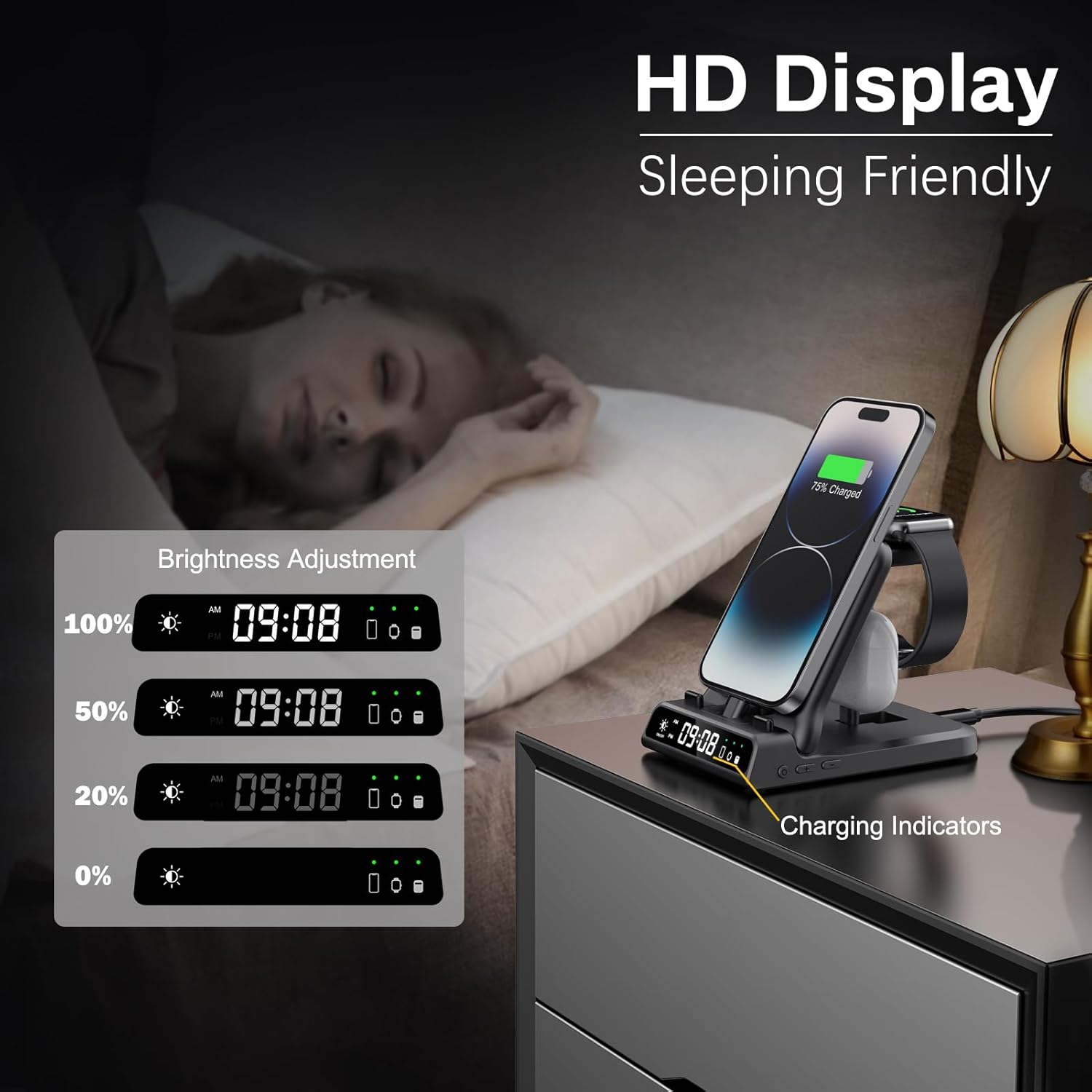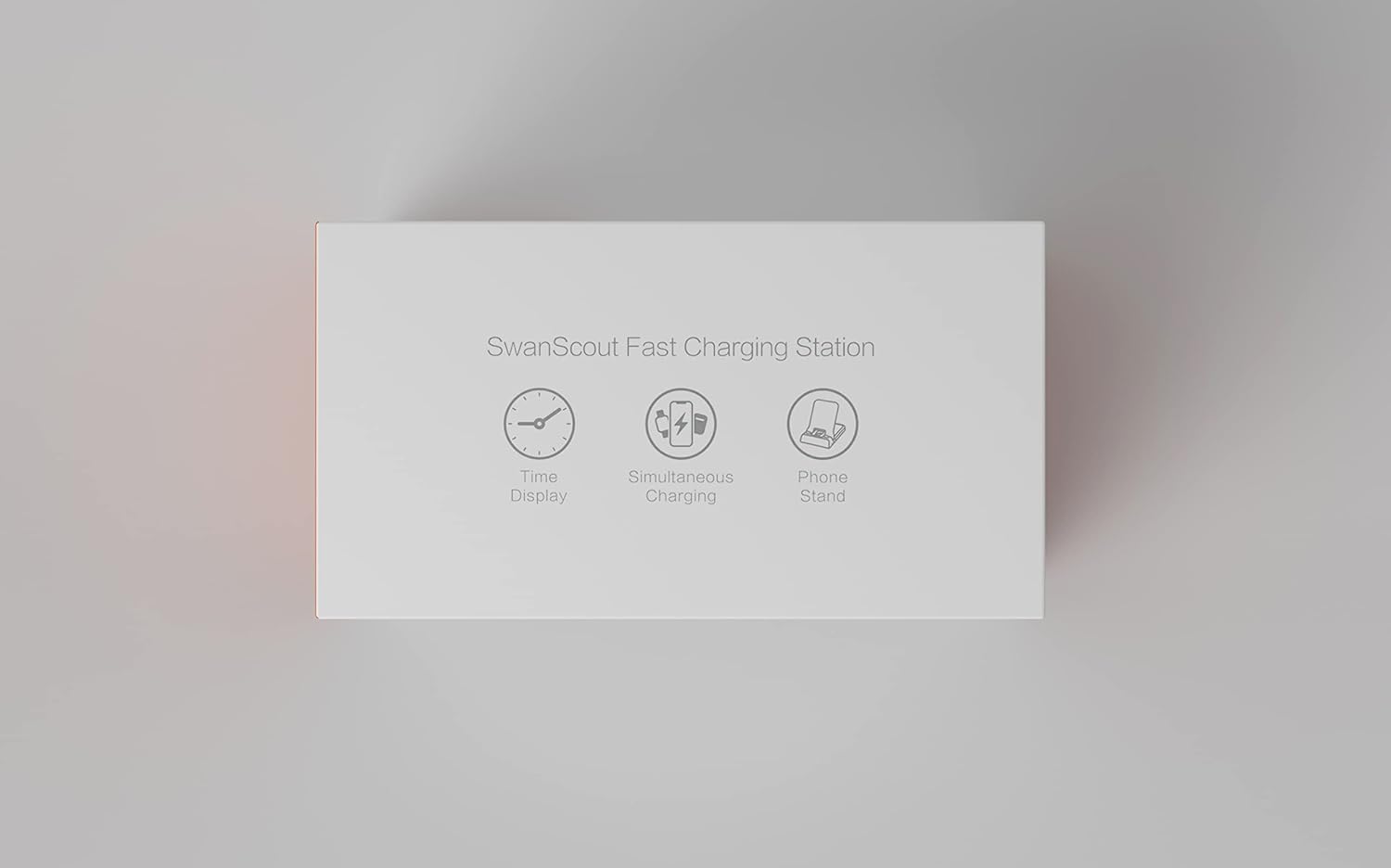 Efficient Charging – Power up three devices with one cable, one charging brick, and one charger. Plus, enjoy a digital clock feature. Perfect for organizing your desk. (Note: The built-in clock is not an alarm clock)
