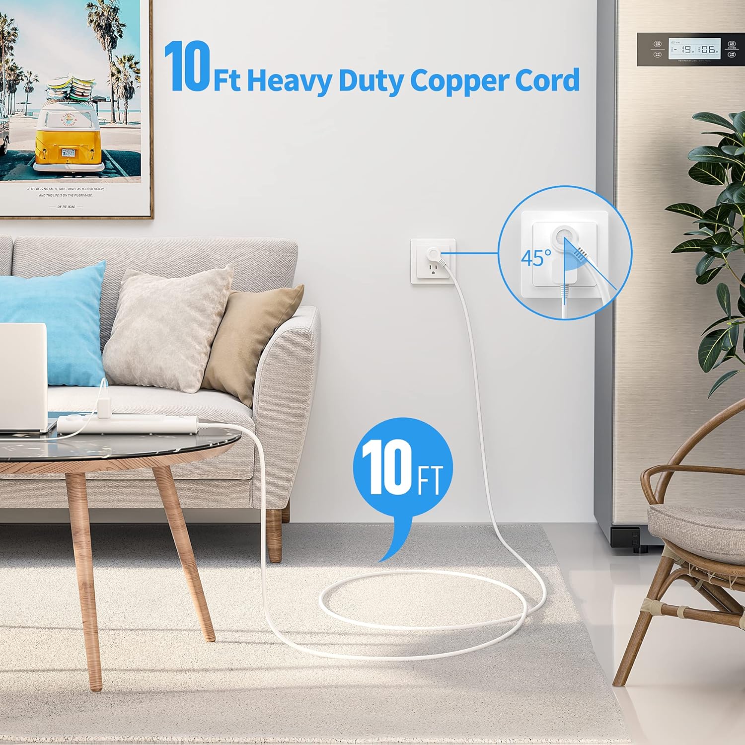 14 IN 1 Power Strip — 10 AC outlets (Total 1875W) and 4 USB high-speed charging ports enable you to power up 14 devices simultaneously. Each USB port can detect and deliver an ideal input current of up to 5V/2.4A (the actual current is decided by the demand for the devices)