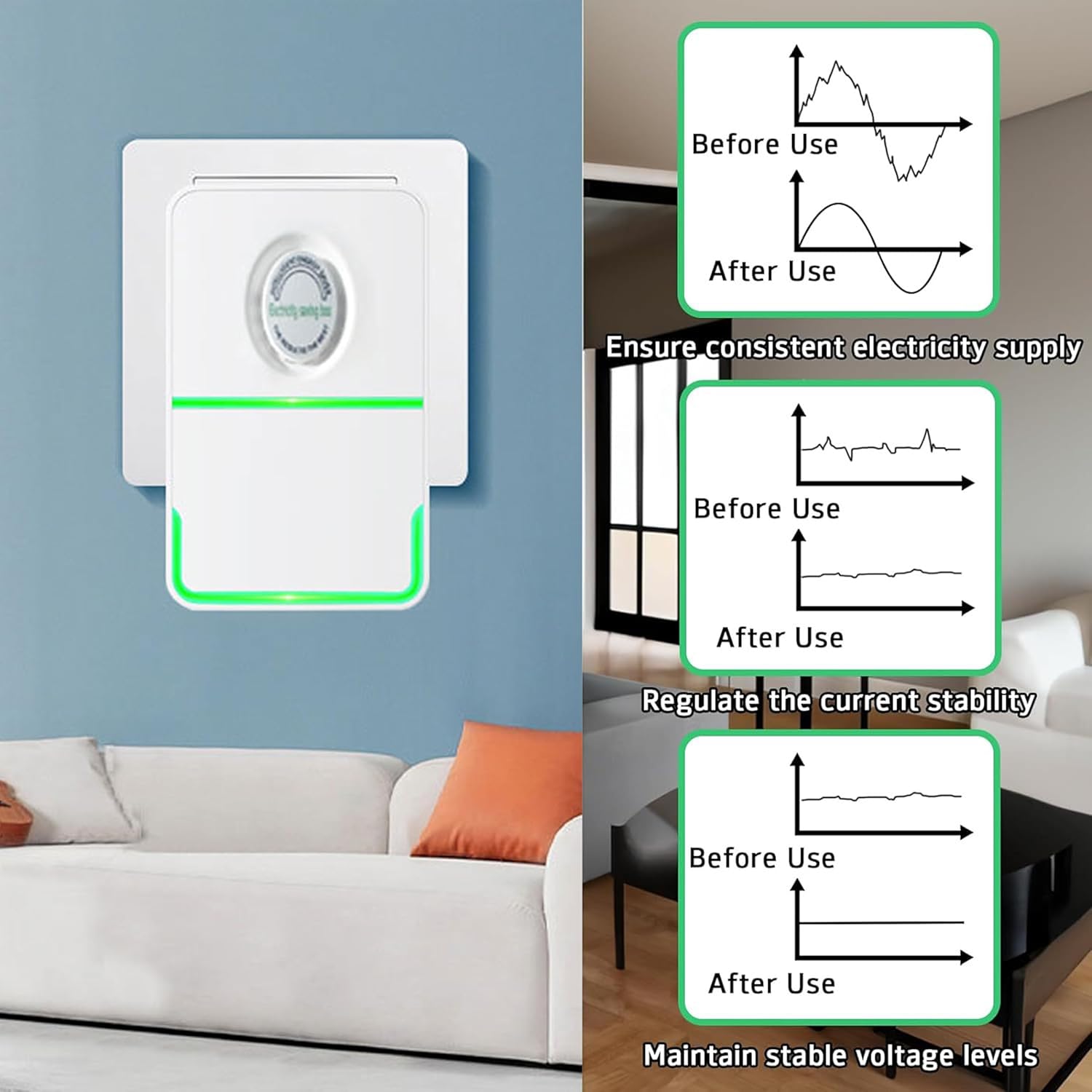 【Easy to Use】 Smart and stylish design, home stop-watt energy saving device. Just plug the power factor saver into the power outlet, the green light will light up, and then start working by keeping the device connected; It will reduce your power consumption, effectively saving up to 20 to 35 percent for heavy-duty power consumption. The longer you use your power saver, the better.