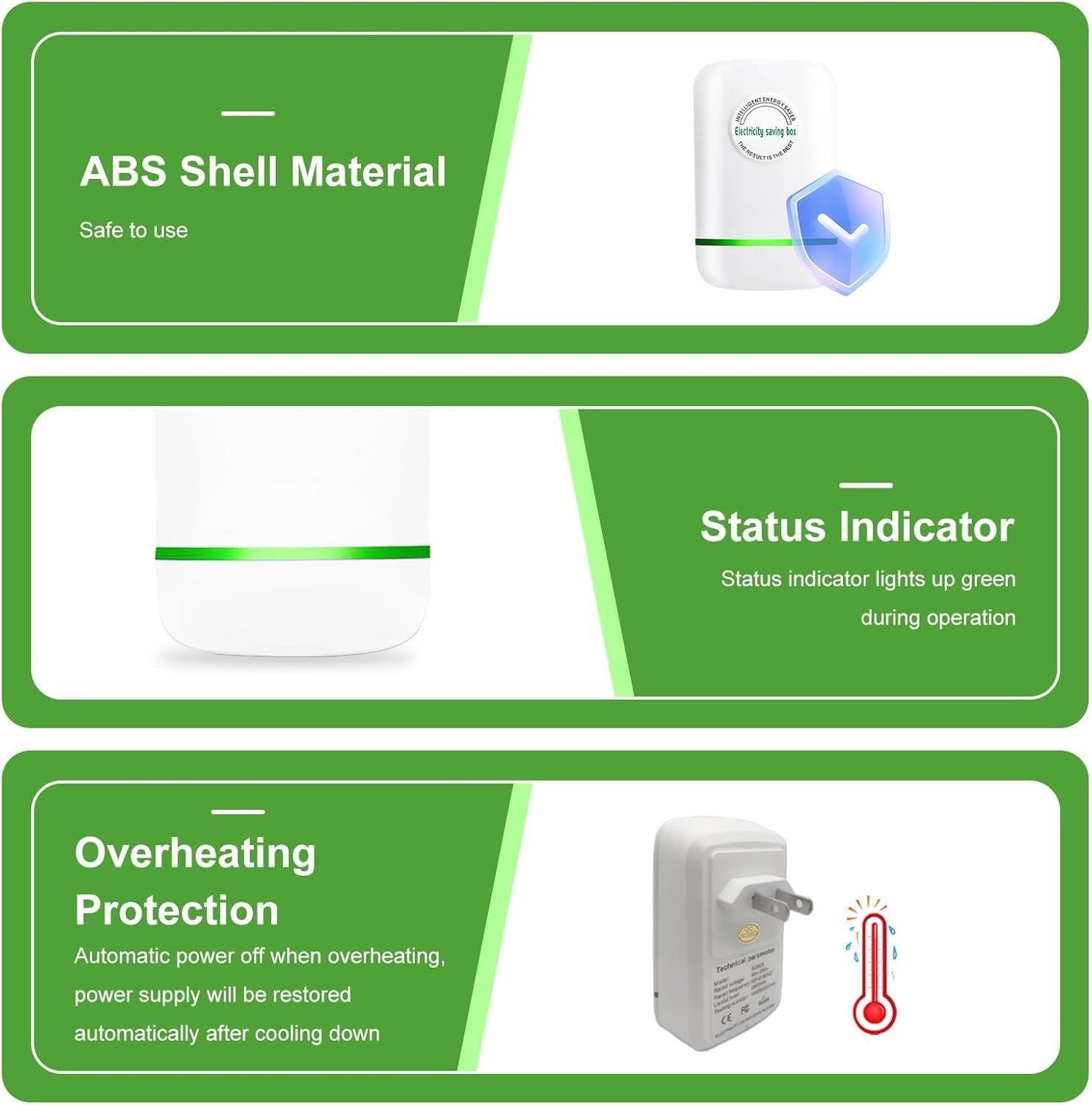 Effortless Installation and Operation: Featuring a plug-and-play design, stop watt energy saving device is easy to use. Simply insert it into any outlet to begin saving energy immediately. No complex installations or setups are necessary. Its sleek and modern design, indicated by a green light, integrates seamlessly into any home or office setting.