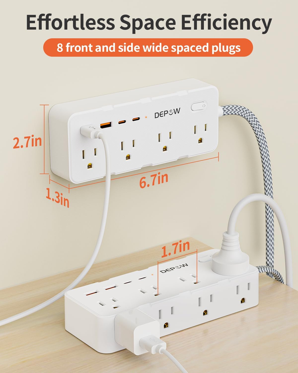 Introducing the DEPOW Power Strip with 5FT Braided Flat Extension Cord! Power Strip, Surge ProtectorPower Strip, Surge Protector