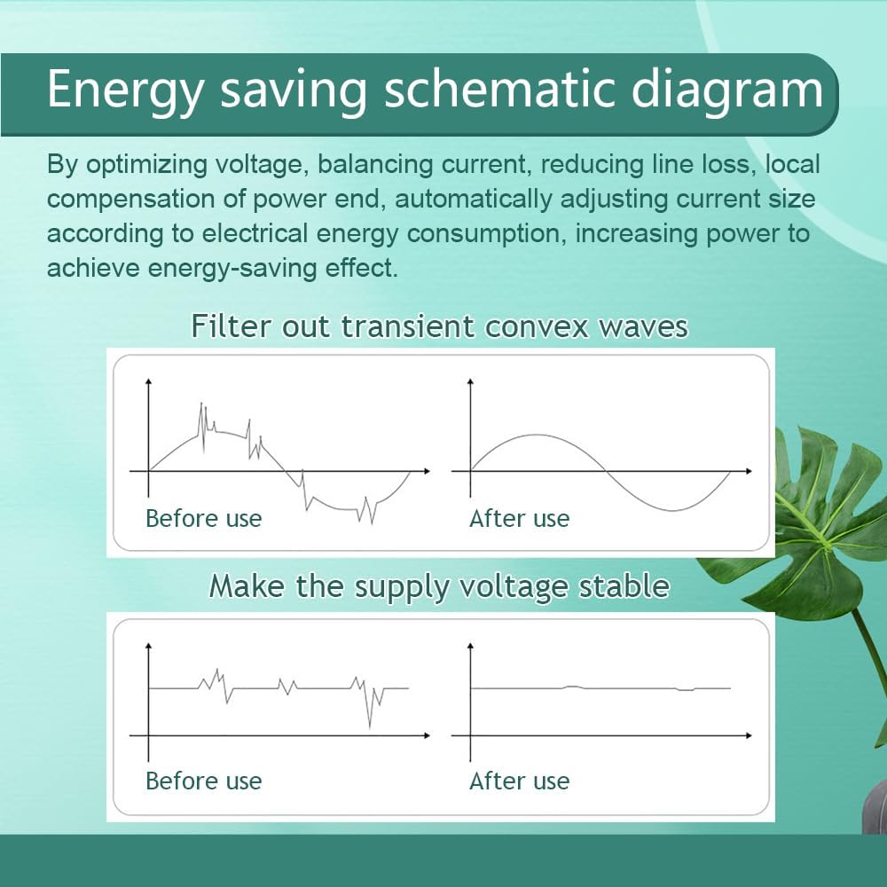 Achieve sustainable energy savings with our device that smooths out power fluctuations and enhances power factor. Its sophisticated technology adjusts current in real-time in response to the energy consumption of electrical appliances, leading to a noticeable reduction in your energy expenditures