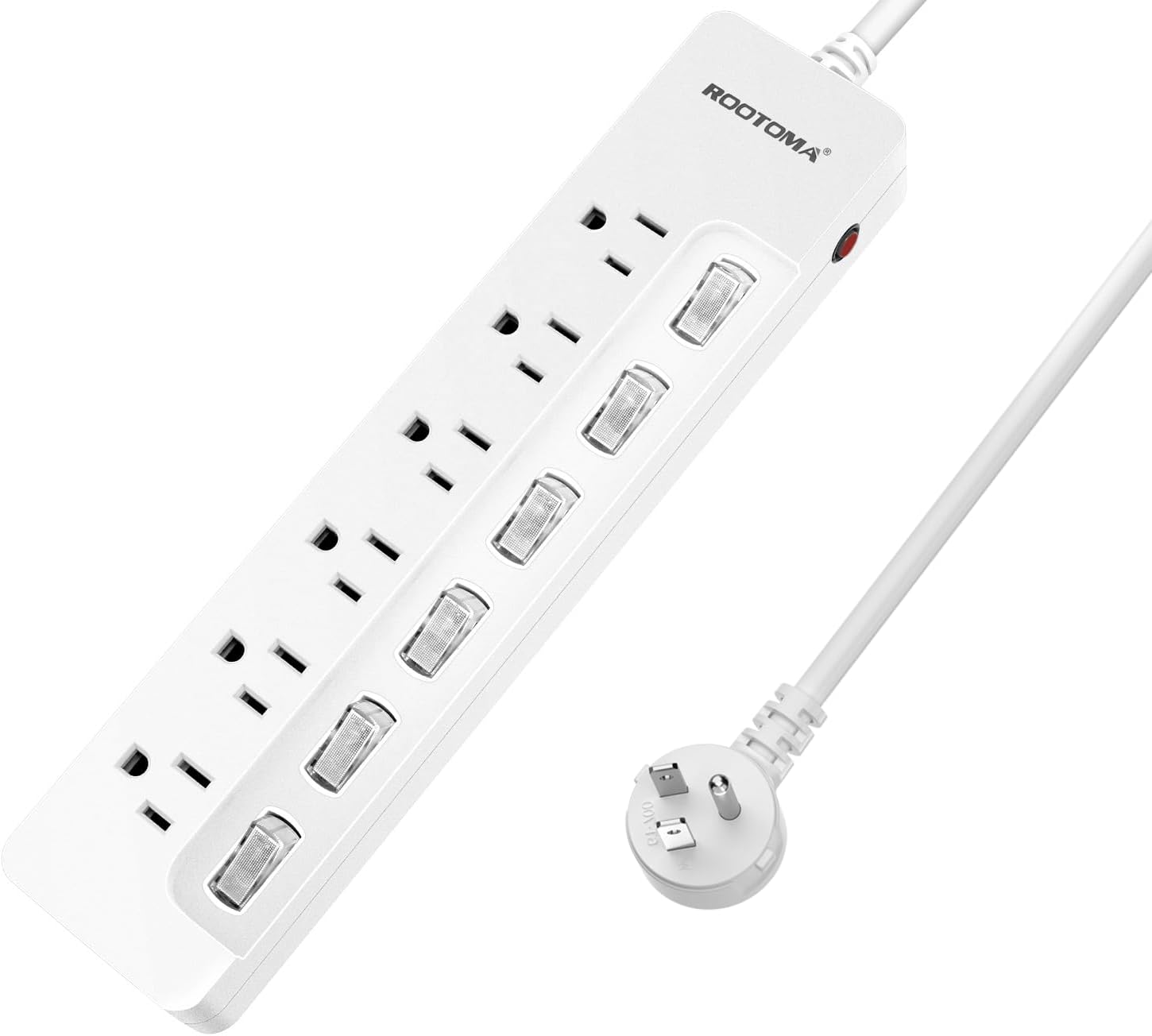 【Convenient Individual on off Switches】ROOTOMA 6 AC Outlet 6ft Surge Protector Power Strip has 6 Separate Switches with Indicator Lights. It can individually control your appliances, save Energy and Money when not in use. Independent switches also provide a great flexibility in areas where plugging and un-plugging power cords would be a hassle.